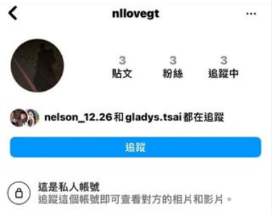 近日有位網友在Dcard發文表示,恰巧看到蔡尚樺與林秉聖都有追蹤一個新建的私人小帳號,恰巧該帳號的名稱是Nllovegt剛好是兩人名稱的縮寫(Nelson和Gladys.tsai),照片也是兩個人甜蜜合照的剪影,這讓日前兩人的誹聞風波再次被拿出來進行討論。