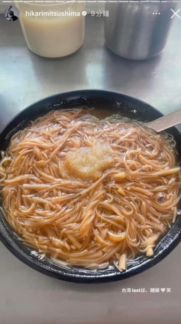 日本女星滿島光日前受邀來台擔任金馬大師課講師,還和許光漢一起擔任頒獎嘉賓,她在台上自我介紹時表示:「我愛麵線」,直接表達對台灣美食的愛。沒想到隔天就有民眾捕獲「野生滿島光」現身台北知名麵線名店,她也在IG曬出美食照跟大家分享。