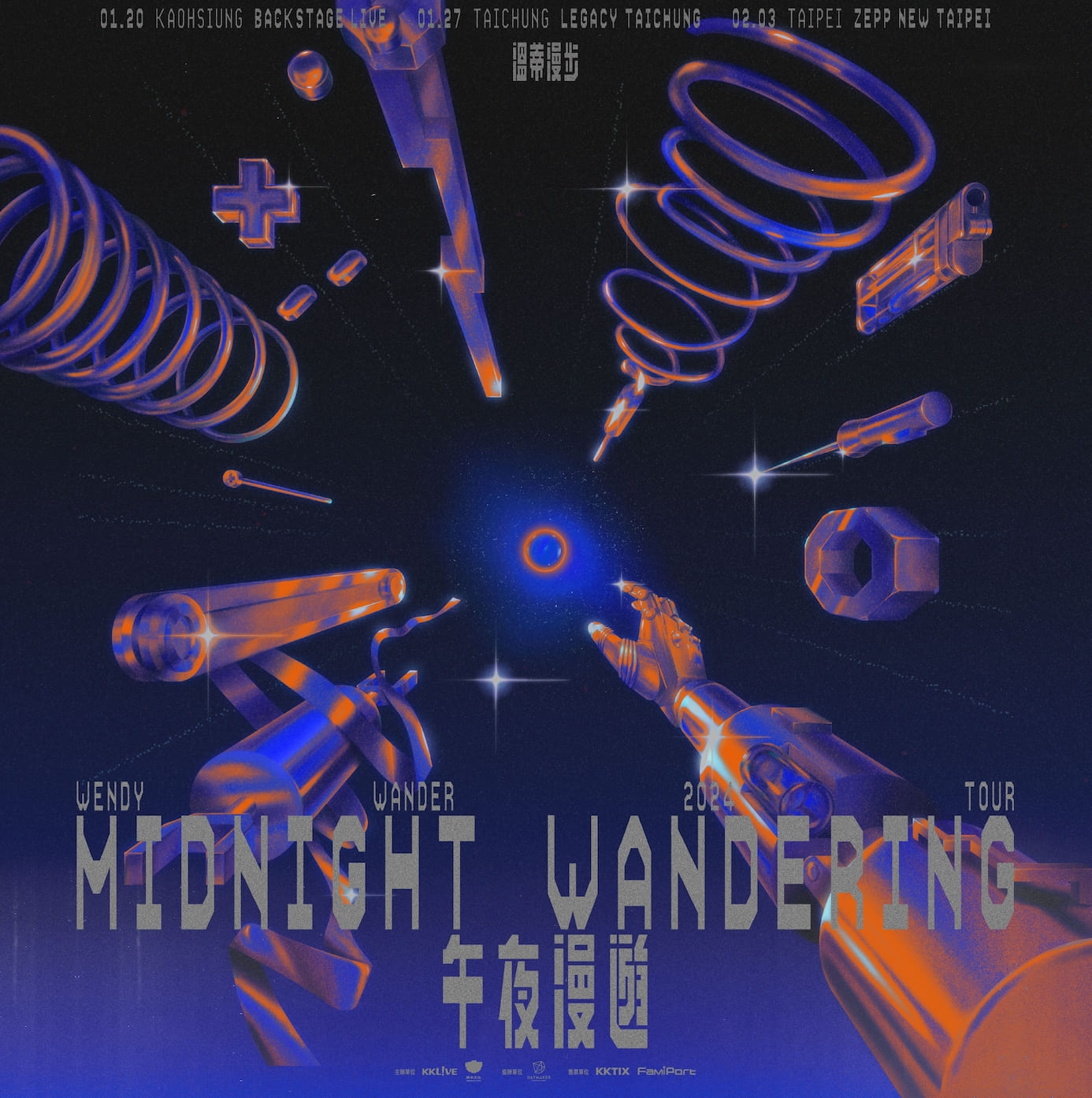 《Midnight Wandering 午夜漫遊》巡迴分別於1/20在 高雄 Backstage Live、1/27於 台中 Legacy Taichung,以及2/3 在台北 Zepp New Taipei舉辦,睽違兩年在台舉辦專場挑戰更大的場地,團員表示:「兩千人是我們目前成團以來在台灣最大的專場演出,會有一點壓力跟緊張,但也會很興奮希望大家可以看到我們兩年以來的蛻變,期待見到大家!」《Midnight Wandering 午夜漫遊》巡迴將於12/1 (五)中午12點於KKTIX開賣,更多資訊敬請鎖定溫蒂漫步官方平台。
