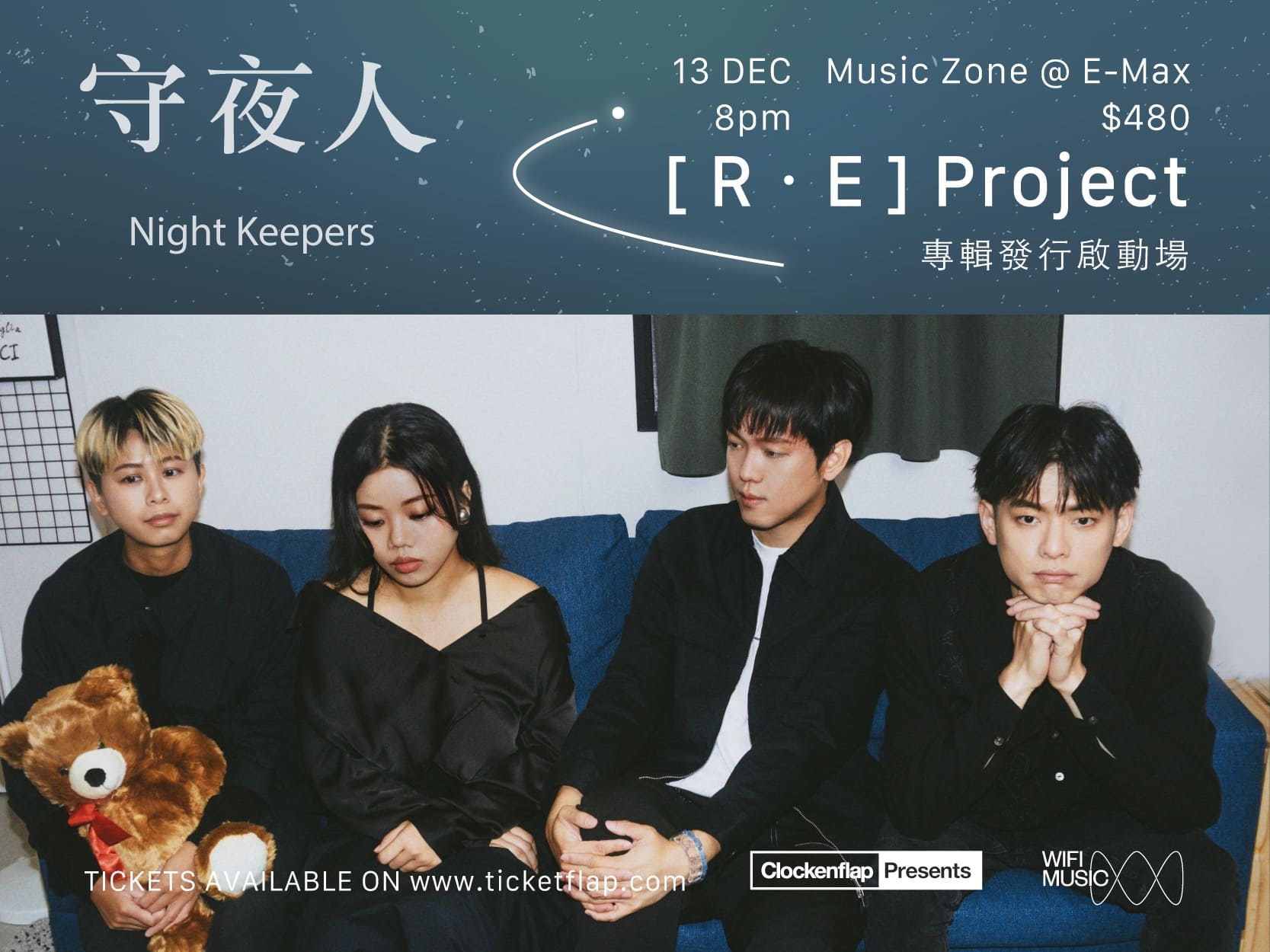 隨著專輯即將推出,守夜人Night Keepers也將在12/13於香港舉辦首次的海外專場[ R.E ] Project》專輯發行啟動場演唱會,提到這場演出,他們表示深具意義,因為這是他們第一次以完整形式到香港演出,相當期待見到香港樂迷。守夜人Night Keepers異口同聲表示只要遇到空檔,絕對不會放過在香港吃喝美食的機會,順道療癒做完專輯的身心。有趣的是這次專場也帶上了共演嘉賓—展瑞,團長旭章笑說:「我們應該會在台上幫台下的觀眾心靈淨化一下,集體消除大家的『夜障』,驅逐負能量。」表示這會是一場最能放鬆自己的療癒演唱會。