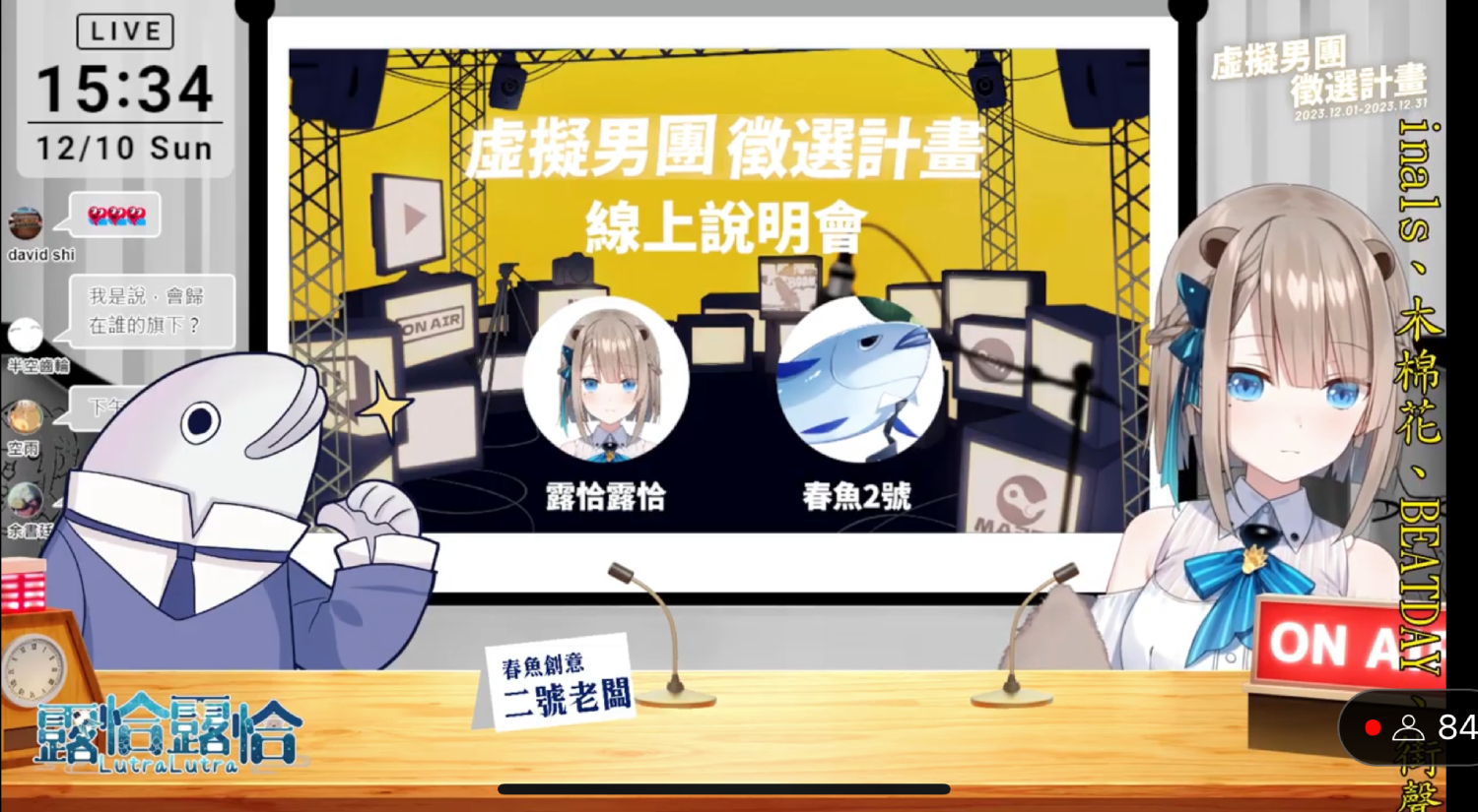 春魚創意與VTuber學姐露恰露恰於10日線上直播,與大家分享此次「虛擬男團徵選計畫」內容,透露去年台灣男團選秀節目《原子少年》成功打造數十位新星,引發許久不見、跨越年齡層的追星現象及新聞話題,也因此開始讓春魚動念徵選男團。隨著VTuber 建置與經營成熟,此男團將以獨立品牌出道,尋找專業製作人帶領,前期也會有專業人士培育與經營訓練。這次徵選特別尋找不同領域的專業人士擔任評審團,還有華研國際音樂加入一同協辦,更是展現計畫的野心,希望成員們在出道前就能擁有跨領域的資源與機會。