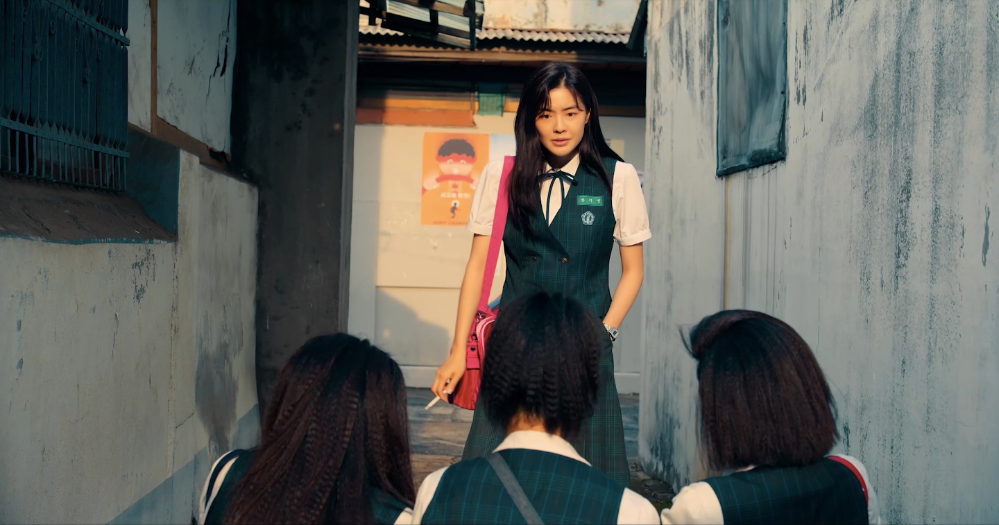 在《少年時代》中,秉泰因為老爸跑路,只能寄人籬下住在李先彬飾演的朴智英家中,智英表面乖巧,在「江湖上」卻有著「黑蜘蛛」的綽號,是一打三也不費吹灰之力的高中女打仔!秉泰一次要幫同學告白智英,帥氣地一手遞上滿滿紙鶴罐、一手遞出情書,智英原本害羞收下,但得知寫信人之後,直接轉身賞給秉泰一個迴旋踢,讓他當場摔倒在地!雖然智英剽悍,但內心也有純情少女心,一次秉泰被單挑,卻意外打贏壯漢,找她重新還原打架過程,秉泰要她背後抱上來,智英一開始還懸空環抱,但在秉泰拉住她兩手緊抱後,她竟然閉上雙眼開始享受,背後環抱蹭出戀愛情懷,她與秉泰日後會不會有新進展也讓劇迷相當期待。