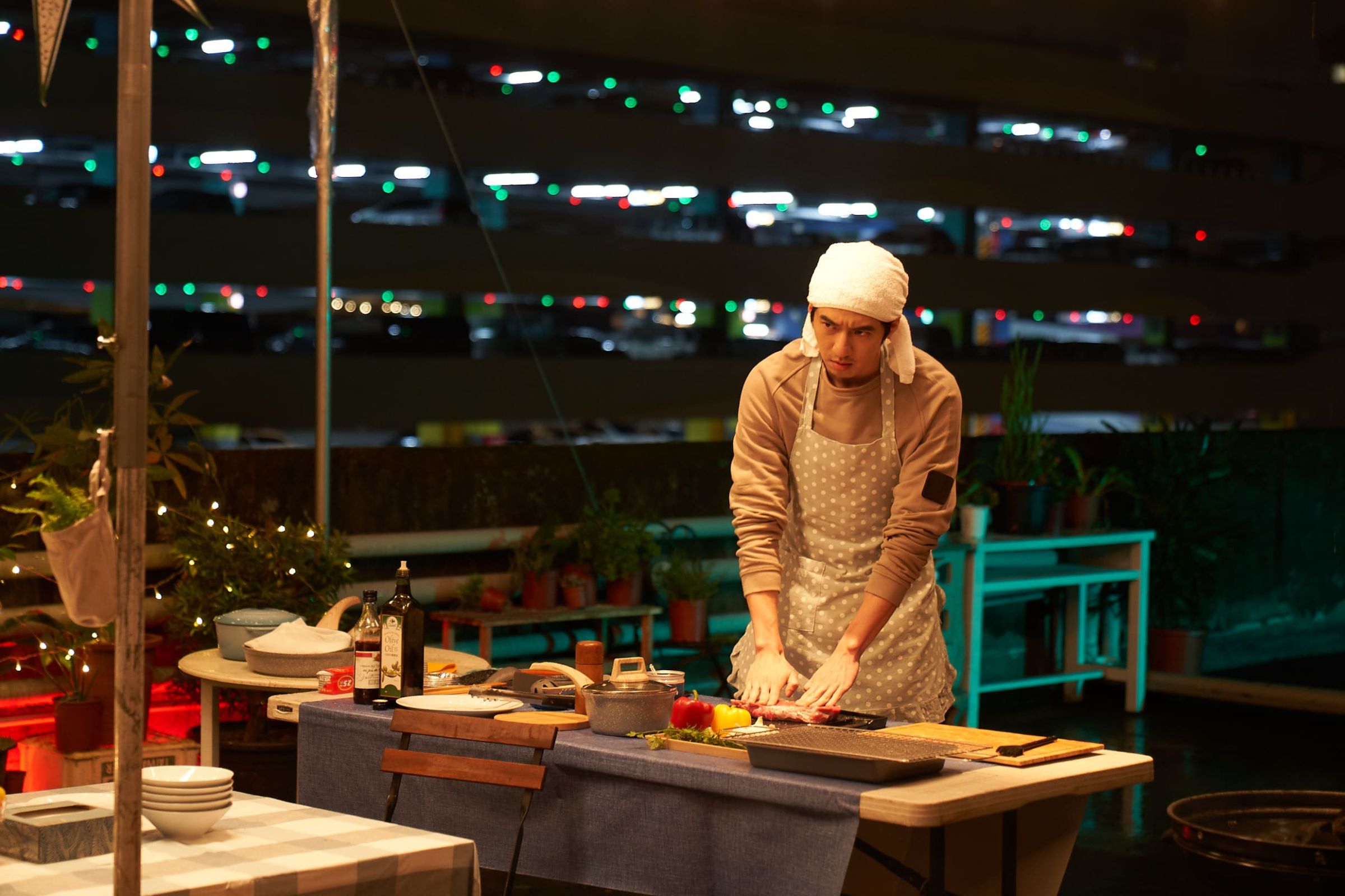 傅孟柏飾演的警察朱坡繼上集邀約王柏傑飾演的殺手黎子東深夜吃關