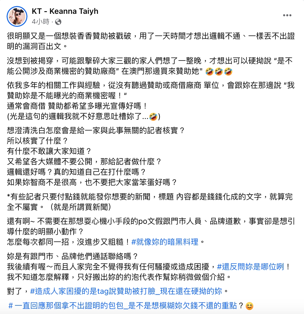 謝和弦老婆澄清「精品包是贊助」!Keanna電話求證再嗆:人家說沒有贊助捏~
