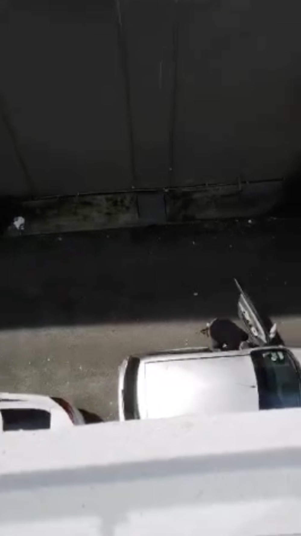 嫌犯的作案過程恰巧樓上的住戶目擊並拍下,只見影片中,一名身穿黑衣的男子將屍體搬運至車子的副駕駛位,一旁的柏油路上還有明顯血跡。此時,正好有3名男子經過,但他們似乎沒有發現任何異狀便離開,隨後又有一台轎車經過,同樣沒有發現問題。最後,嫌犯開著車駛離現場,目擊者隨後便報警處理,只可惜已經錯過黃金的救援時間。