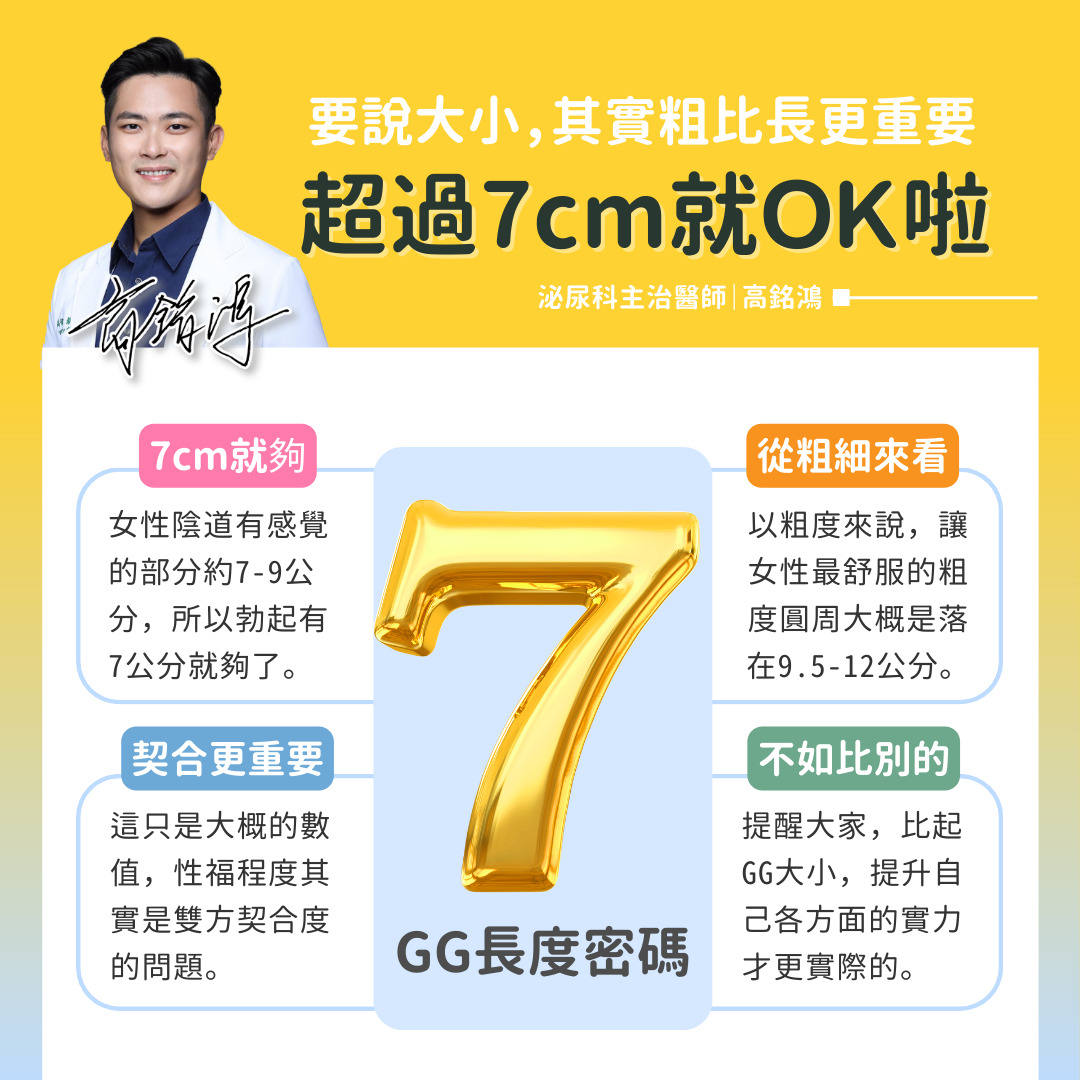 事實上,生殖器大小一直是許多男性用來證明「雄風」的標準,但泌尿科醫師高銘鴻就曾表示,女性陰道有感覺的部分只有7-9公分,所以男性生殖器的長度只需要有7公分就夠用,至於粗度則是以圓周9.5-12公分是讓女生感到最為舒服。高銘鴻醫師指出公分數都只是大概值,最重要的還是雙方的「契合度」。