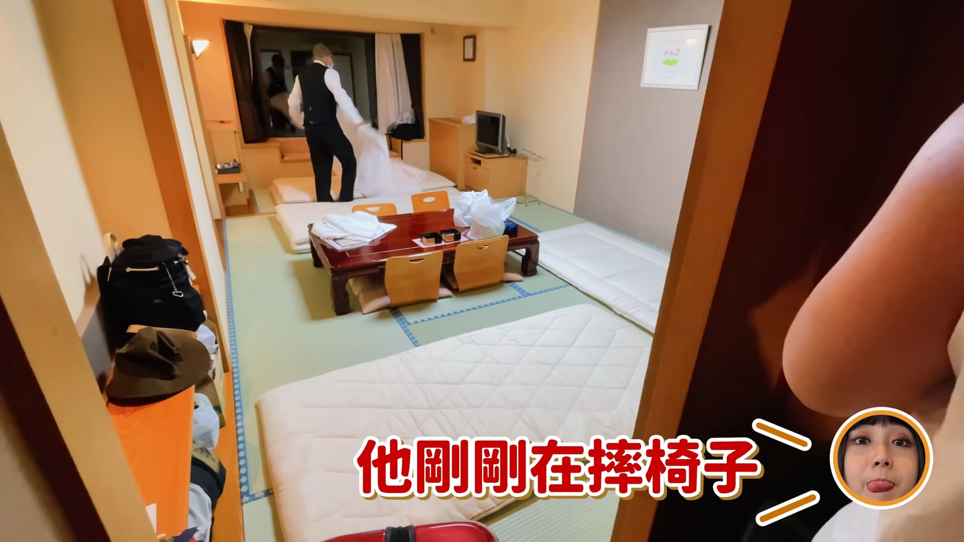 不僅如此,肉比頭的家人透露,房務人員幫忙鋪床時,態度非常惡劣,不但直接踩在客人要睡的床單上,還大力摔椅子,反應室內冷氣有問題時,還以不耐煩的口氣回應,奶奶還因此受到驚嚇,趕緊到其他房間避難。對此,肉依火大直言:「我真的覺得我來這裡住是乎錢給人糟蹋的!」翔走也根據個人經驗表示:「日本絕對不是全部都是以客為尊的,大家不要太夢幻。」影片曝光後,網友紛紛氣憤表示:「這溝通過程越看越火大」、「你們真的太有修養了,看了我都爆炸了。」