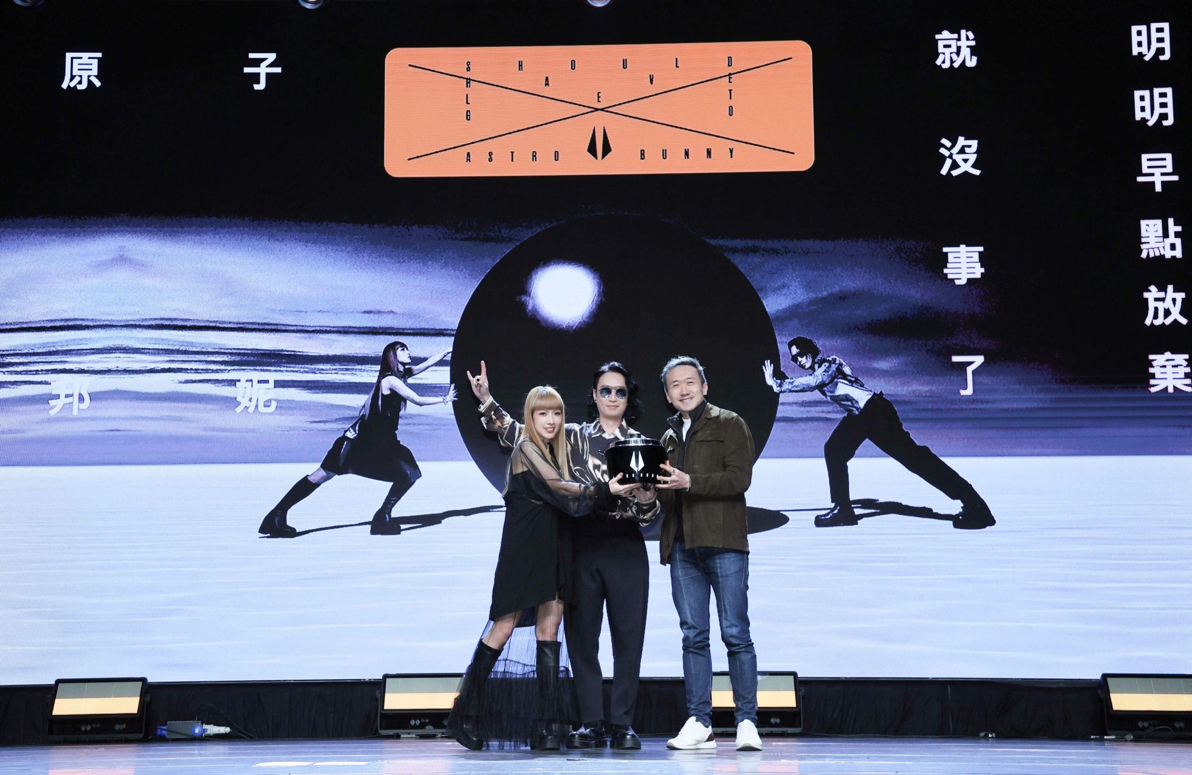 今日記者會上,華納音樂的董事總經理-楊國修更特別在這重要的一天,為原子邦妮送上全黑的「特製電鍋」!這份禮物其實別具意義,原來原子邦妮平時會藉由各種旅行及生活體驗,從日常中找尋作品靈感,近來他們更開啟露營之路,並且還做起ASMR版的「吃播」,讓樂迷們看得口水直流!主唱查查笑說:「這個禮物真的太貼心,我們之前演唱會的時候,其實真的有帶過電鍋到後台自己煮東西吃,一方面我們剛好在飲食控制,也可以吃得比較健康!」也期望這份「特製電鍋」禮物,能陪伴著他們遠征各地,一步步走上更大的舞台!