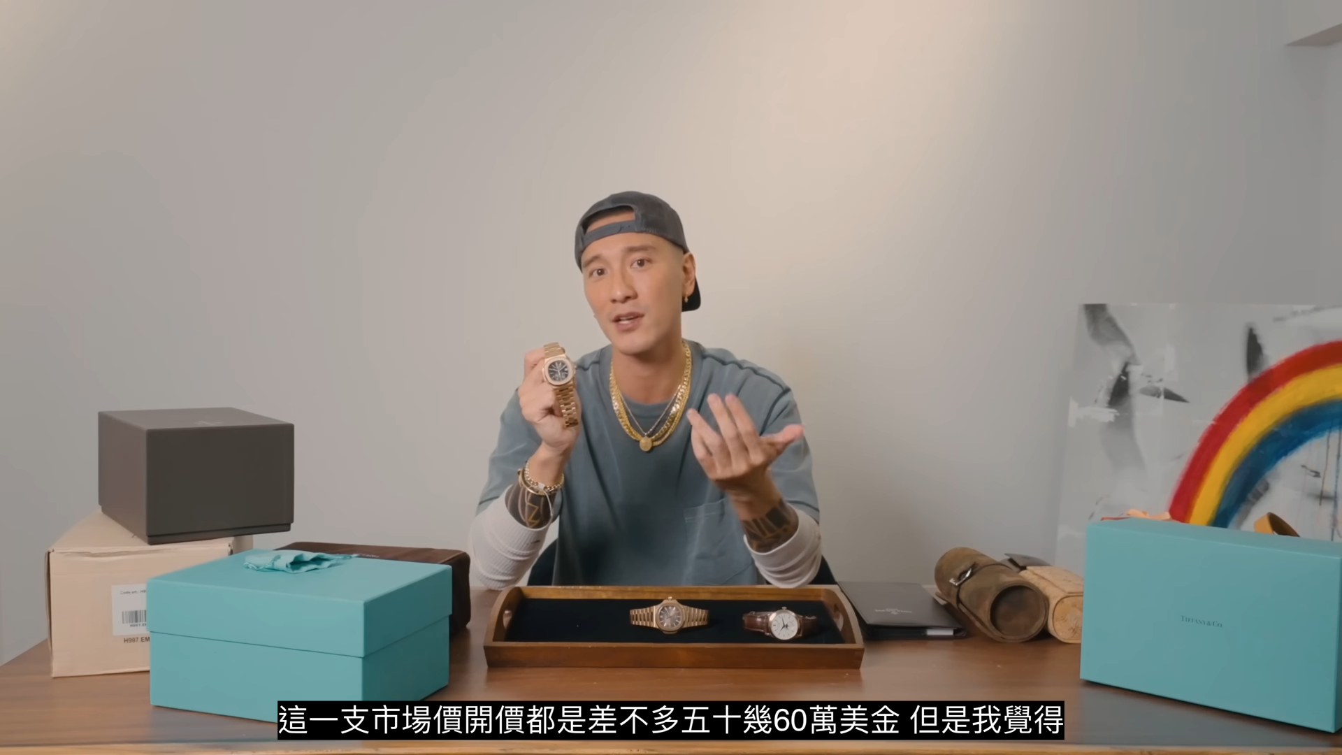 王陽明在新片中介紹自己的百達翡麗收藏,其中最新入手的5980/1R Tiffany面盤只跟原版差一點點,他自嘲:「我知道聽起來很愚蠢,就是幾個白字印上去會讓它貴了2.5、3倍。」該支手錶的市場價最高達5、60萬美金(約台幣1550萬至1850萬),但他認為真正的價值大該是45至48萬美金(約台幣1400萬1500萬)。