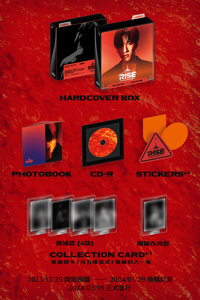 不過苦盡甘來的婁峻碩其實在2023為自己繳出一張漂亮的演藝事業成績單,光是去年一整年就唱了超過百場校園、接了超過40場商演,另外還以團體「五堅情」名義連開五場海外演唱會,更別說自己個人在台灣及香港開了全新個唱巡演,此外還利用空檔拍了三部戲劇,讓橫跨影歌雙棲的他不僅聲勢大開,去年卯起來拚事業的他更名利雙收成為名副其實的潮流天王,讓2023年可說著實成為婁峻碩的「豐收年」!立定目標朝全方位發展的婁峻碩把去年一整年的努力當成「投資」努力充實自我時立,這次藉著新專輯不僅為自己的2023音樂事業做了一個漂亮的總結,更期望透過這張全新作品《RISE》賦予的意義"Rise above it all",期許自己2024無論在歌唱及戲劇領域都能更上層樓,展翅高飛!