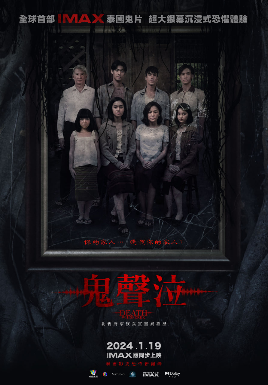 全球首部IMAX泰國鬼片《鬼聲泣》(Death Whisperer)在泰嚇近五億票房、四週票房冠軍,年度必看泰國恐怖神作,將於今年1月19日在台上映。劇情真實改編自1972年北碧府家族靈異事件,從小體弱多病的國中生妹妹妍恩在放學路上卡到陰,原本甜美溫柔的性格,變得異常暴力嗜血,不僅在半夜生吞動物內臟,試圖幫她制煞時,更時而溫順扮可憐、時而口出穢言,抱媽媽阻止驅邪儀式,心機玩弄全家人的情感!泰國網友驚呼:「最婊綠茶女鬼!」外表神似大勢女團NewJeans Danielle,擔當女鬼的泰國超級正妹新人Mim更真正演到「鬼上身」,全劇組一起去燒香拜拜才化解,同時表示電影太可怕:「電影裡的鬼就像我們的兄弟姐妹,不只懂得挑撥人心,還會拿槍殺人、把人搞瘋的!」