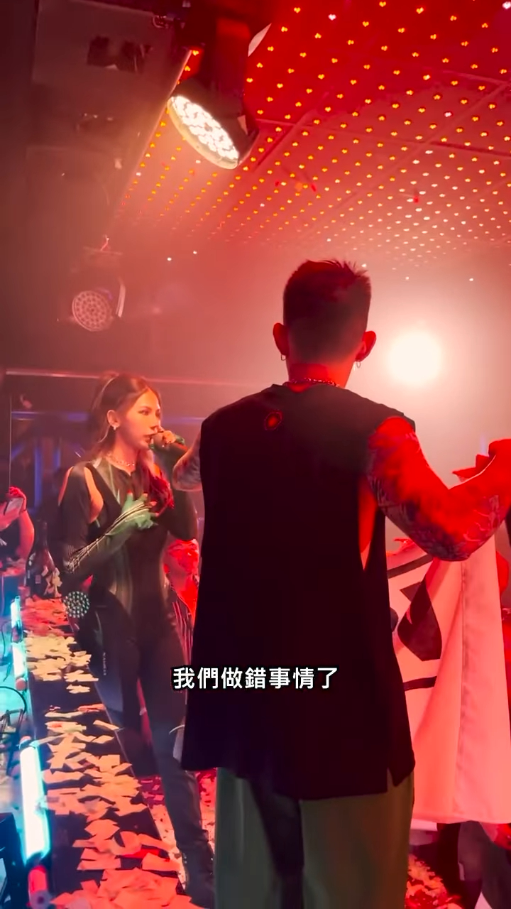 蕾菈9日在IG分享去年底在夜店表演的影片,只見夫妻倆都身穿綠色套裝,她表示:「我們今天是故意穿綠色的。」由於許久沒有公開表演,更是出事之後首次演出,她在後台坦言:「我覺得我有點緊張」,甚至還為此喝酒壯膽。湯宇則在上台前鼓勵她,「妳也不是第一天表演了好不好,拿出學姐的樣子。」所幸最後一切順利。