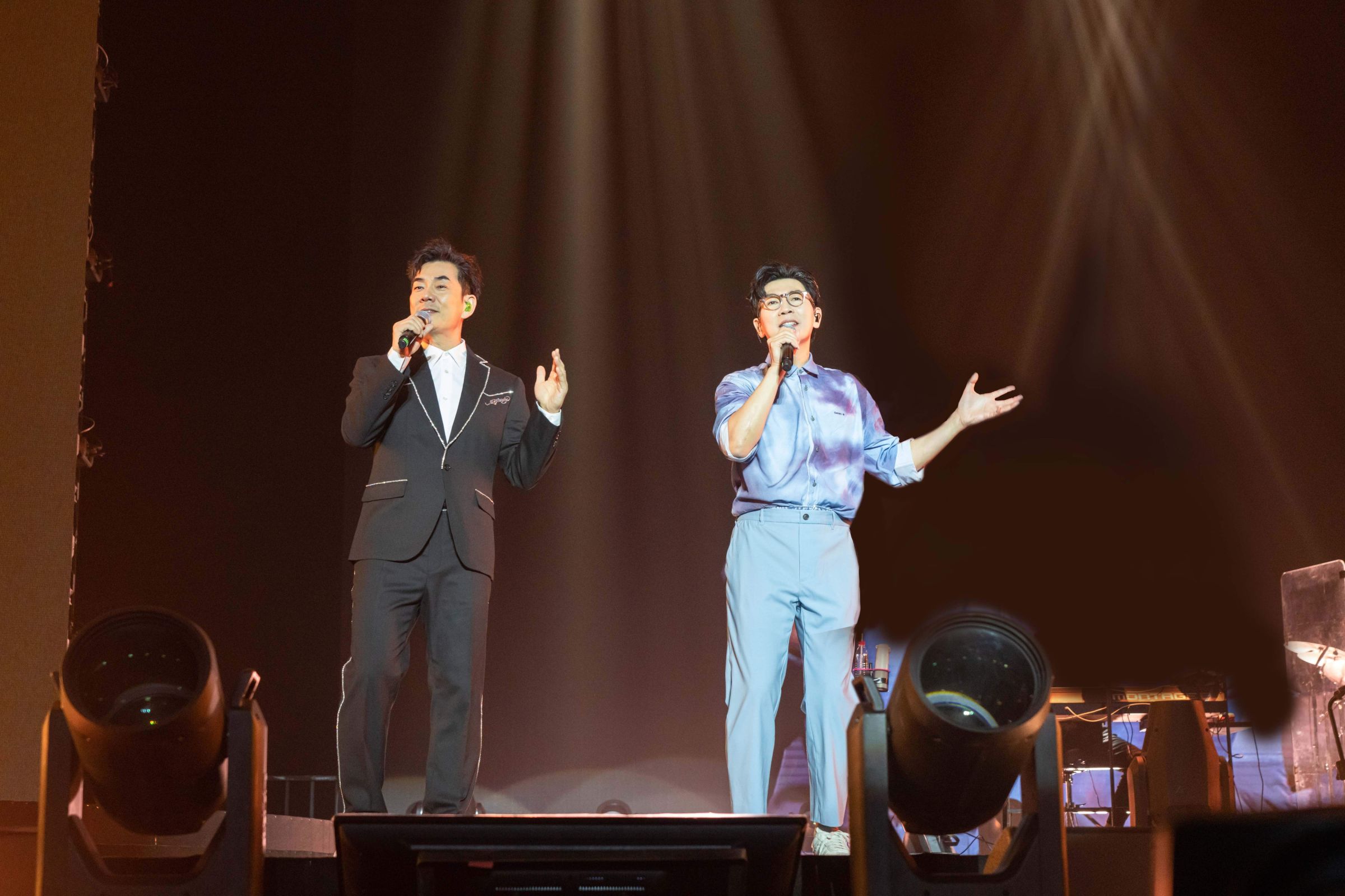 兩人首次合作《對面的女孩看過來》,隨著歌詞左看右看、上看下看,相當活潑俏皮,還指揮兩邊的觀眾歡呼PK,直接將現場的歡樂氛圍推向高潮。兩人在台上聊天,現場還曝光了多年前任賢齊親吻品冠臉頰的青澀圖片,背後的故事卻非常戲劇性——原來是當年任賢齊生日時,曾許願會親走進房間的第一個人,結果來的人正好是師弟品冠。兩位照片當事人對此表示「印象深刻」,現場觀眾也跟著瘋狂起哄「親一個」,讓整個互動環節更加歡笑不斷。