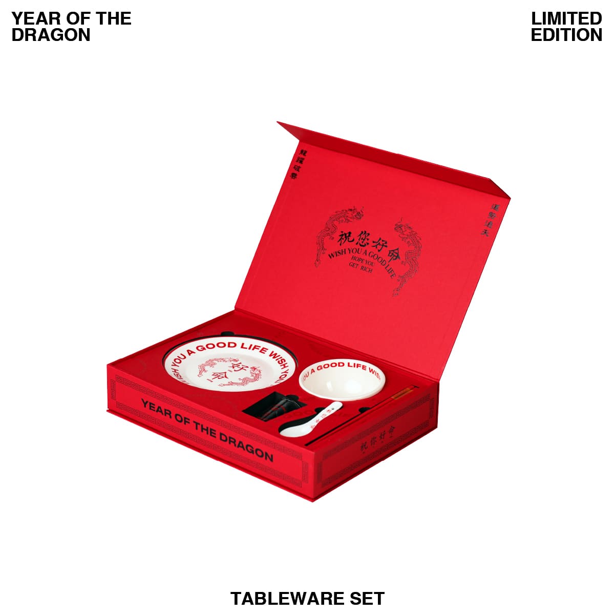 「Wish You A Good Life 祝您好命」創意公司也於首款原創設計商品發表之際,官方網站同步上線並開放會員申請! 極限量的「WYAGL龍年限量碗盤禮盒組」將於2024 年 1 月 17 日 (三) 下午1點正式在「Wish You A Good Life 祝您好命」官方網站限量啟售,僅限「 祝您好命」會員購買,更多資訊請參考祝您好命官方網站與社群平台。