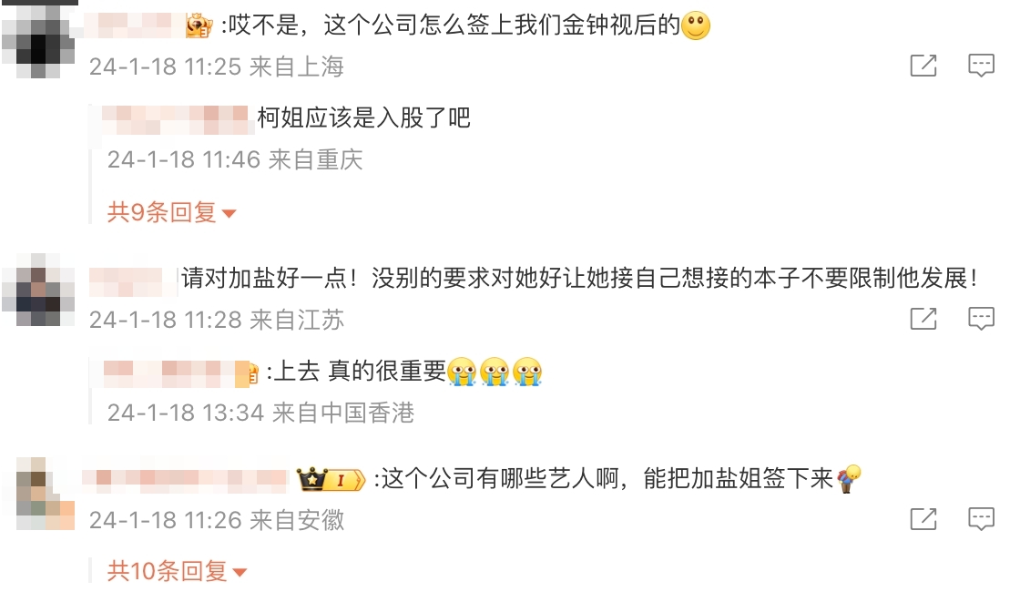 對此,網友紛紛吐槽:「這個公司怎麼簽上我們金鐘視后的」、「你們公司上輩子拯救了銀河系」、「公司別的藝人一個認識的也沒有,柯姐簽的啥公司啊?」、「柯姐應該是入股了吧」、「請對佳嬿好一點!沒別的要求,對她好讓她接自己想接的本子,不要限制她發展。」