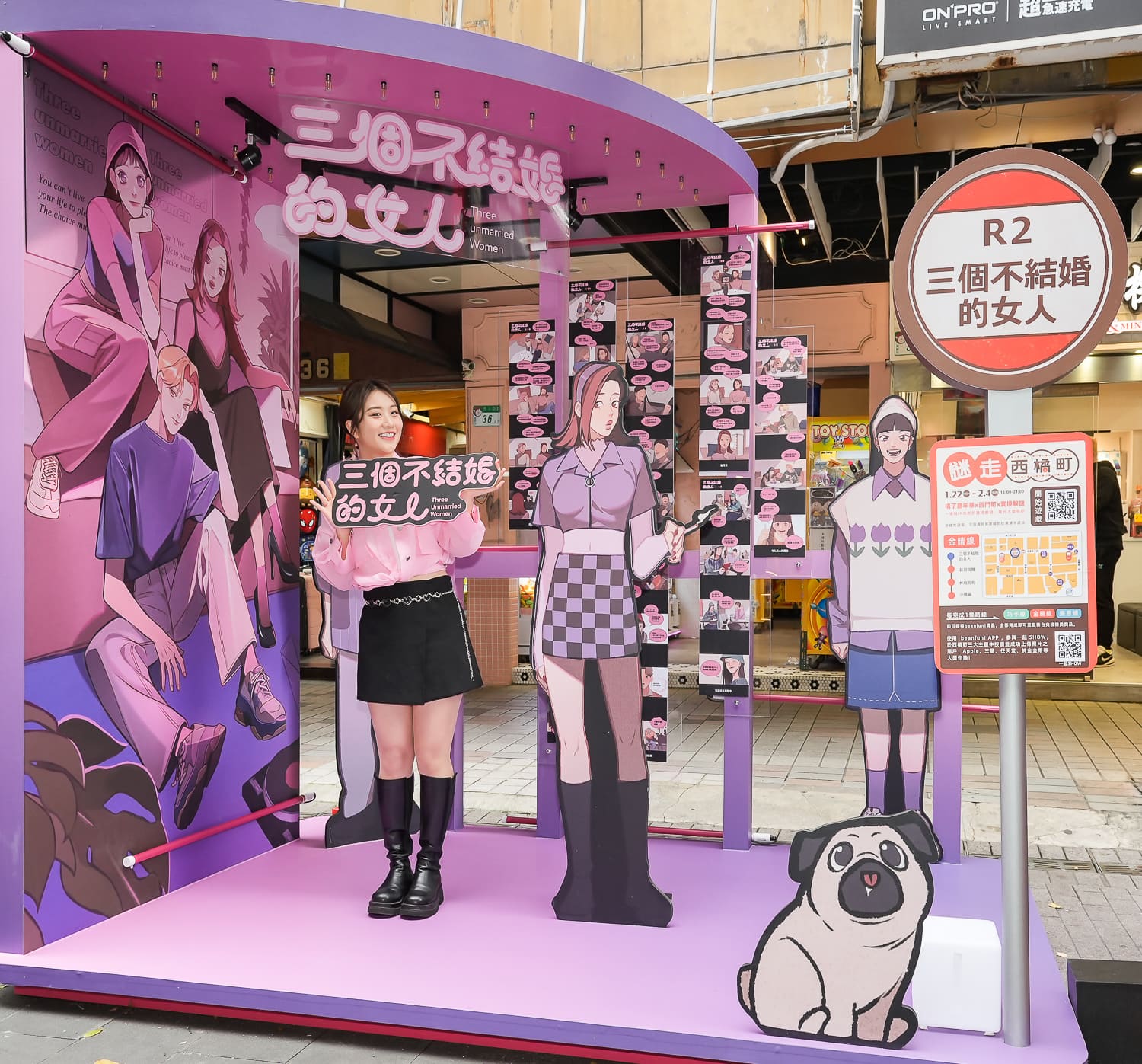 匯聚本土創作能量的原創內容平台漫畫星、文學星,也將擁有破 60 萬閱讀紀錄的超人氣作品《三個不結婚的女人》漫畫戀愛金句、《叛逆玩家》小說內容融入關卡設計,解謎同時更能勾起粉絲共鳴。關卡依劇情畫面的打造大型裝置,讓讀者能夠與角色們合影,走進 2D 世界中。