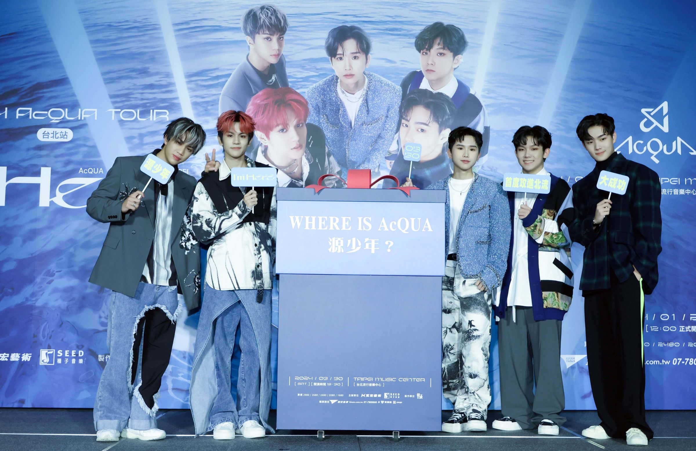 繼去年台北Legacy MAX和台中Legacy演出皆獲完售佳績後,最具潛力的超能量男團AcQUA源少年狹帶高人氣,延續氣勢,今(1/23)舉行記者會,宣布將於3/30首度攻進台北流行音樂中心開唱,舉行「2024 AcQUA Tour 【I'm Here】 台北站」演唱會,出道未滿兩年,以飛快速度接下代言主題曲、MV點閱數破百萬次,如今,再征更大的北流舞台,宣告將是成員蛻變之際,將出道500多個日子淬煉而成的成長與蛻變注入此次演唱會,邀大家一同見證。
