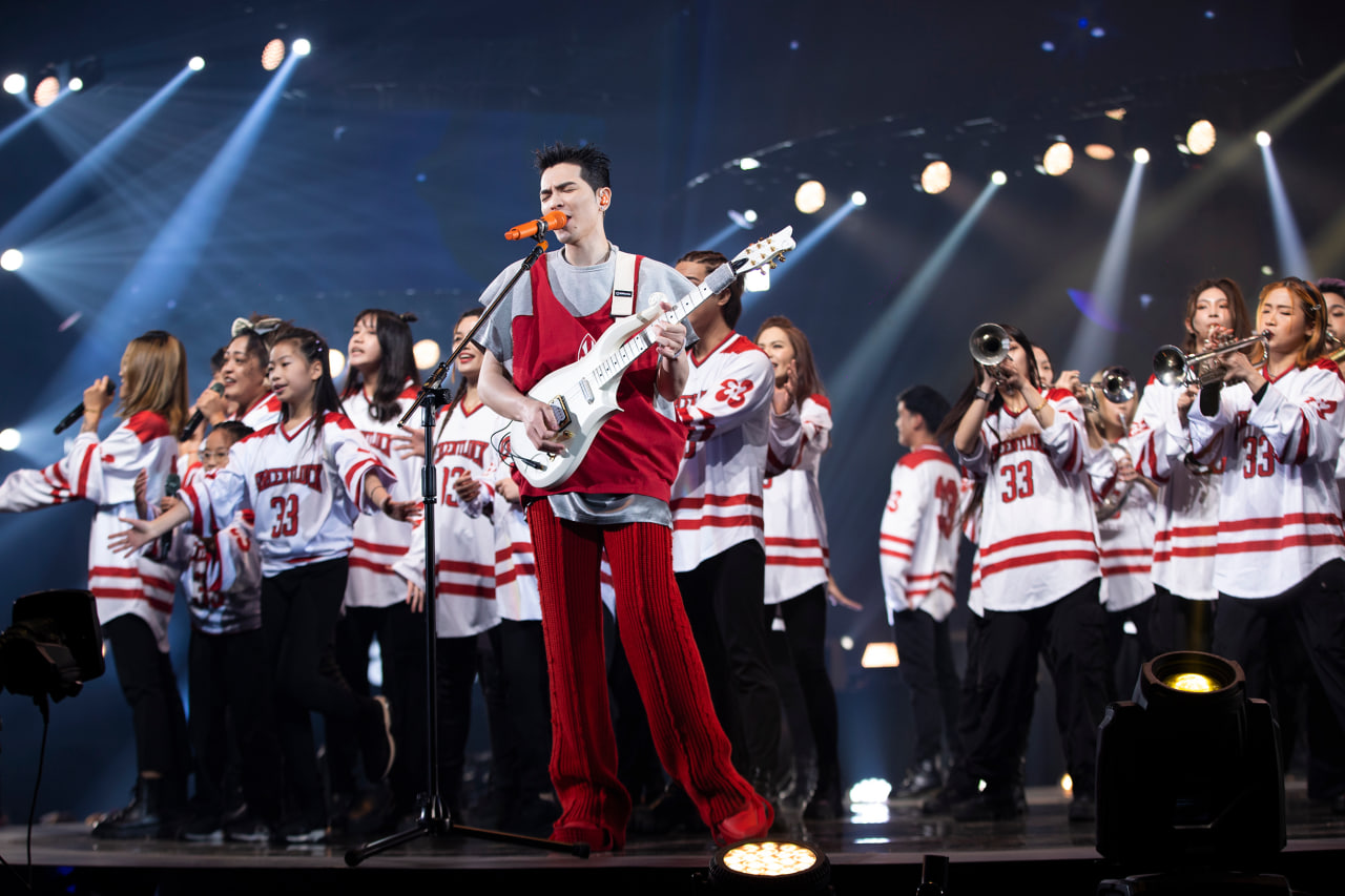 此外,今年特別採華麗雙開場,由白隊大使林宥嘉一襲皮衣勁裝帶來經典浪漫情歌〈兜圈〉,全場一秒陷入浪漫氛圍,接著演唱新歌〈一家人相親相愛〉,透露不僅是新歌首唱更是除夕限定,並暖心向觀眾喊話:「希望你的家、我的家都可以相親相愛」,緊接著飆唱〈說謊〉,歌迷們陶醉在迷人嗓音中更一起全場大合唱,而最後嗨唱〈自然醒〉,全場萬人觀眾揮動螢光棒將今年的紅白揭開熱鬧序幕。而八度登上《紅白》陪伴觀眾度過除夕夜的紅隊大使蕭敬騰,從舞台緩緩升起彈奏著鋼琴,率先深情獻唱新歌〈白夜〉、緊接著在〈無目的地找目的地〉時率領樂儀隊走向小舞台和全場觀眾一起熱唱,最後一首光是歌名就超甜蜜的〈在無名指有你的名字〉則是動員數十人一起在舞台上熱唱,蕭敬騰也透露自己非常看重這一次的表演,光是短短七分鐘的開場表演,就動員了幕前幕後近百人團隊,大陣仗完成這場既溫馨又熱鬧新年演出。