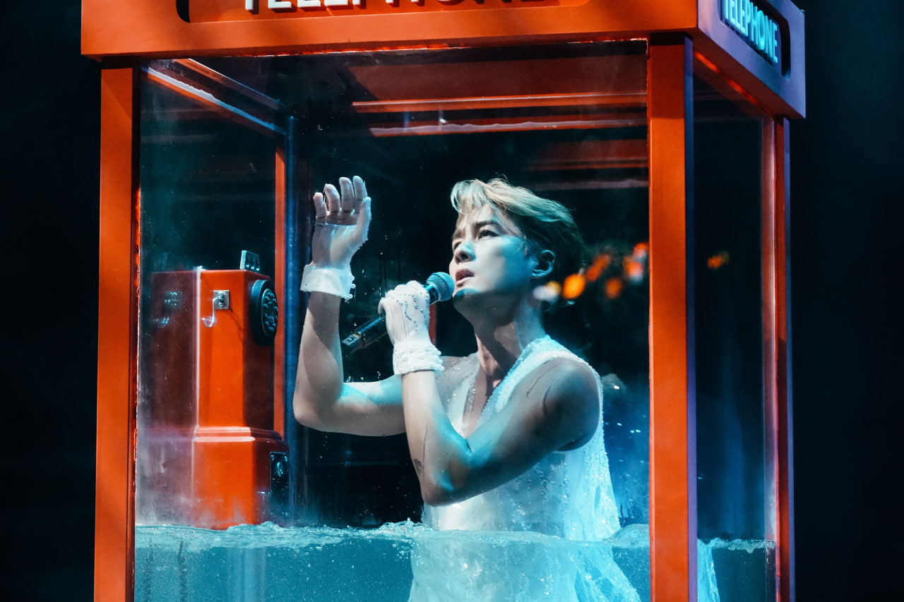 6分鐘的演出中,吳克群帶來超夯經典神曲〈為你寫詩〉和〈沒關係〉串燒,更在電話亭裡重現「反作用力」的招牌手勢,引起滿場歡呼。演唱到新歌〈就讓我喝醉〉,只見電話亭裡水位越升越高、直至胸口上方,過程讓人目不轉睛,吳克群更在最後全身潛入水中,以充滿意象感的方式表達歌曲敢愛敢傷的人才最珍貴、會痛代表你還活著的涵義。別出心裁的表演設計誠意滿點、絕無冷場,全場驚呼連連,喝彩聲熱烈不斷!完整精彩演出務必鎖定除夕當天《2024超級巨星紅白藝能大賞》播出。