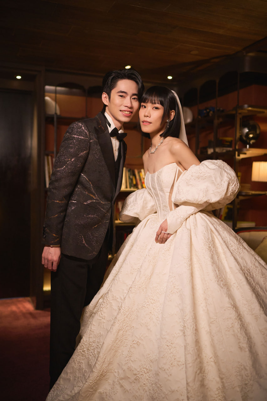 兩人這半年來用心籌備婚禮內容,去年更決定飛往冰島拍攝婚紗, 他們在接近零度的寒冷氣候中,走進冰川、瀑布、 懸崖等大自然地形,記錄下一張張浪漫又唯美的照片, 美照一曝光在社群獲得樂迷祝福與讚美連連,恭喜他們:「 有情人終成眷屬!」婚禮現場布置充滿巧思,用多樣鮮花、 恐龍作為主題。婚禮開場時, 丁丁身穿由林莉精心打造的高級訂製公主系列白紗, 華麗剪裁突顯出如歐洲皇室高貴氣質, 新娘就像是迪士尼公主成為全場唯一嬌點,Skippy則穿上由芊 翔西服打造的英式時尚西服成為最帥氣新郎,2人一進場就引來全場 高分貝尖叫。