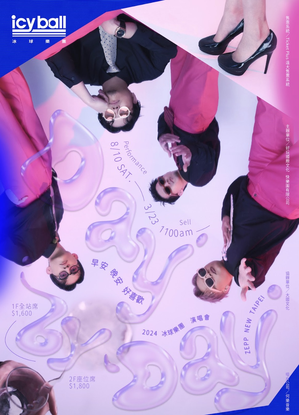冰球樂團去年成功地完成台北、高雄、台中、吉隆坡、 新加坡、香港,6個城市的巡迴演出。今年成團11年, 更向前邁一步,首先將舉辦台北2000人專場演唱會。 名為冰球樂團「早安 晚安 好喜歡」2024 Day By Day演唱會,將於今年夏天8月10日七夕情人節,在Zepp New Taipei登場。3月23日上午11: 00遠大售票系統正式開賣。