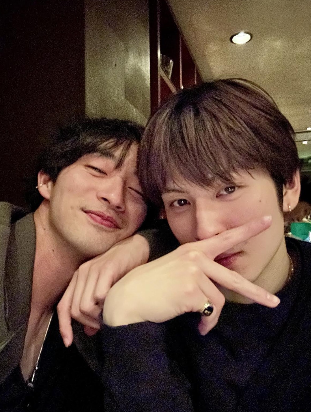 不僅戲內讓網友好動心,戲外兩人也不停在X(原推特)放送福利,他們公開一張私下合照,古屋呂敏穿著深V襯衫領口大開,把頭手靠在長谷川慎的肩膀,眼神迷茫露出一臉微醺的笑容,而長谷川慎則對著鏡頭比出YA的手勢,古屋呂敏寫下,「一晚和小慎喝酒,跟你們說,他喝醉的時候很可愛,哈哈。」曖昧留言讓網友都暴動,已有近30萬瀏覽,超過1.1萬次按讚,各國語言的網友累積近3000則留言回應,「照片太有男友感了吧,是官宣嗎?」、「你們倆都可愛」、「他們好像戴情侶耳環?」、「我在辦公室看到直接原地心動死」!