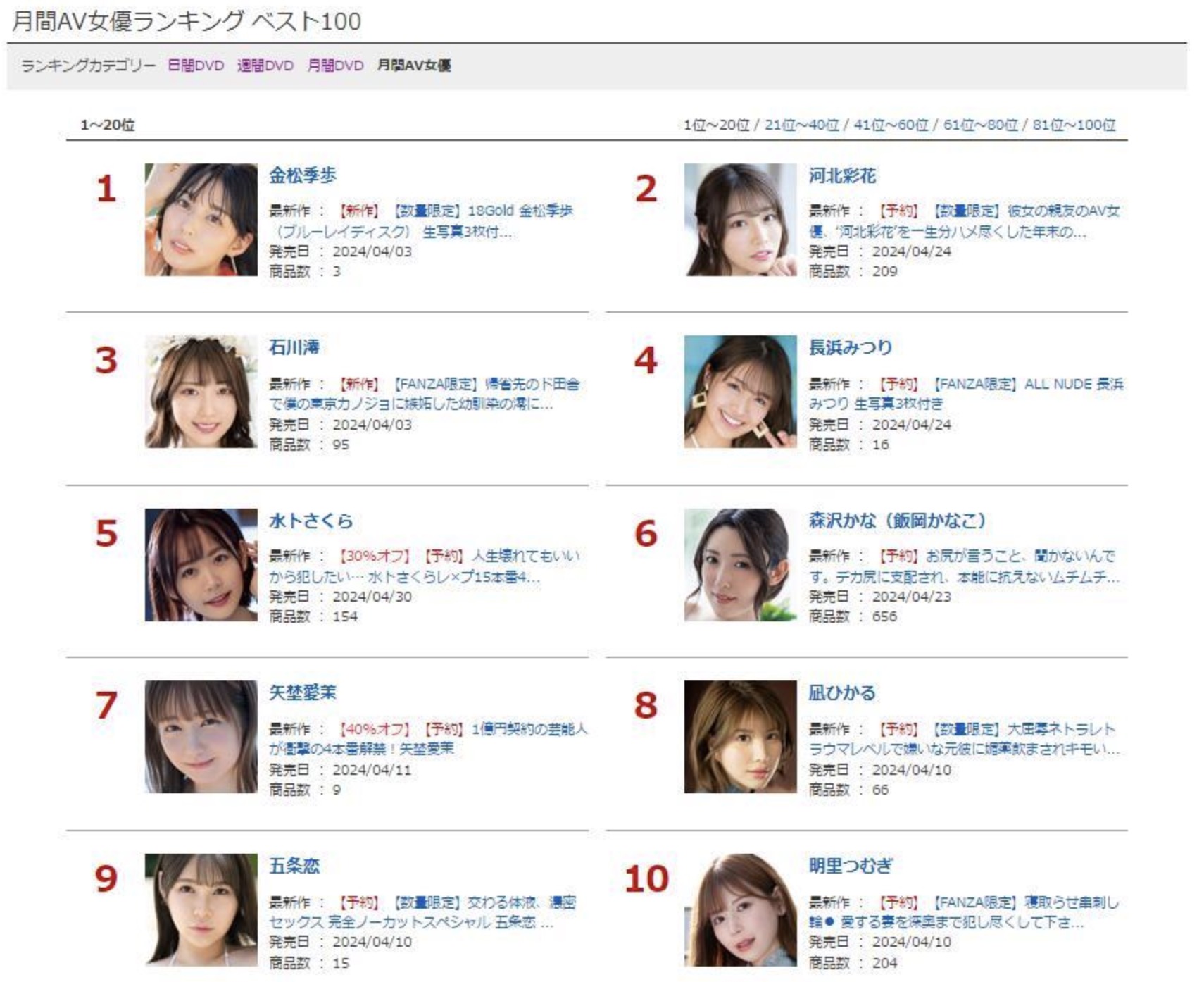 近日成人片商公佈了3月的總銷售量,統治榜單已久的超級女優河北彩伽在本月竟被擠下,而這位超越河北彩伽的人正是這位超級新星金松季步!這樣的成績讓粉絲們更加期待未來金松季步的發展。