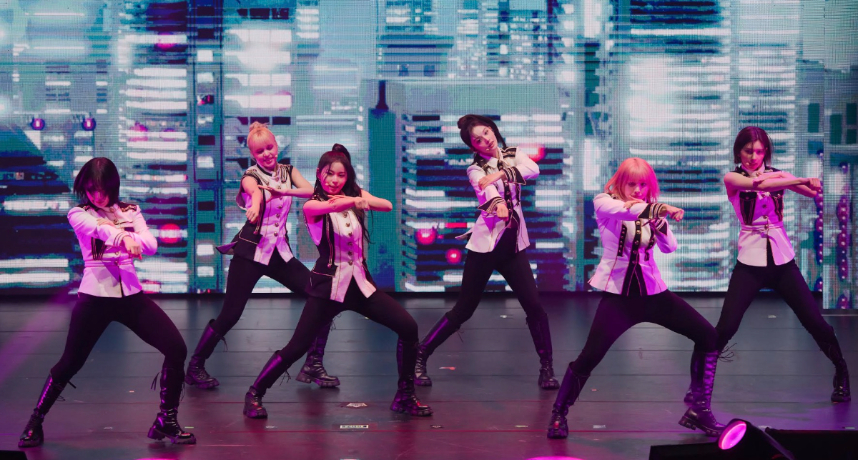 被NSWER(官粉名)粉絲盛讚舞台與音樂無敵的NMIXX,唱起抒情歌如風般溫柔,哼起輕快歌時像蝴蝶恣意飛舞,當嘻哈重旋律旋律一下時,肢體魅力又夠魅的她們,一開場,透過片頭影片,帶領大家重返校園時光,身穿一襲改良式白色儀隊制服,帶來兩首人氣金曲「占(TANK)」與「Soñar」,當進入問候橋段時,NMIXX依序自我介紹,可愛的海嫄竟俏皮撲癡一笑小NG,讓全場粉絲甜炸喊可愛,隨後成員也一起歡迎所有NSWER一起進入NMIXX大學!在台上個個是耀眼的陽光女孩,但一聊到美食,NMIXX六個女神瞬間就變成吃貨,紛紛不約而同開始聊起吃,也貼心謝謝工作人員與粉絲的心意,讓她們這次行程吃好吃滿,還現場學了不少中美食名稱的說法,包括「珍珠奶茶」、「水果棒」、「太好吃了」、「我愛吃」等,同時不停比出愛心手勢喊「我愛你!」,讓台下粉絲接受最TOP的粉紅電力。