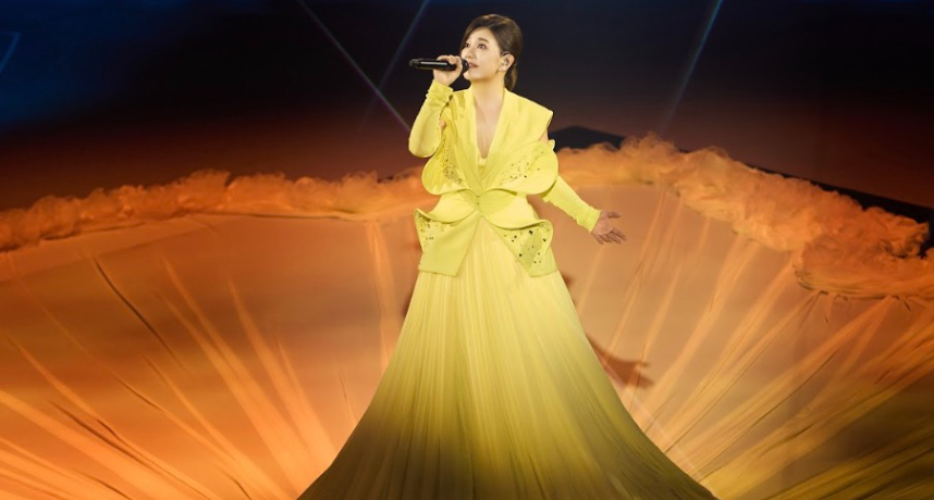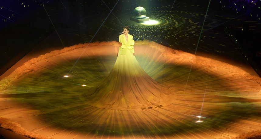 情歌天后梁靜茹「2024當我們談論愛情」世界巡迴演唱會25日晚間在深圳展開新的篇章,休息近一個月,梁靜茹狀態無懈可擊,開場以一襲6米長的亮黃色禮服在高台上演唱〈寧夏〉,宛如初夏的花仙子降臨凡間,整晚砸百萬重金重新打造5套造型,令座無虛席的1.2萬名觀眾讚歎聲不斷。
