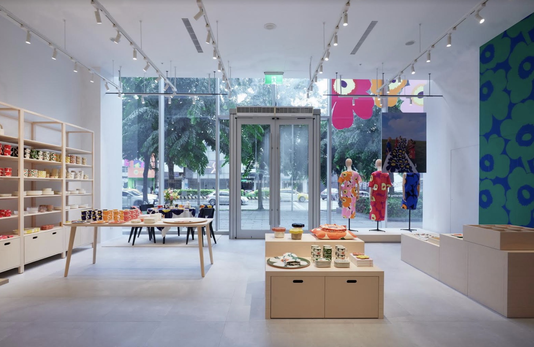 2024年6月1日芬蘭設計品牌Marimekko於台南南紡購物中心開設第三家全新專門店,店裝設計延續品牌北歐自然氛圍及永續的經營理念,占地近55坪且挑高3米9的寬敞明亮店裝為全台最大間專門店,溫潤的樺木多層陳列櫃、矮櫃讓店內充滿居家氛圍,由直木條圍繞玻璃櫥窗打造的入口,搭配木格柵隔出的更衣室空間,並有富含幾何藝術氣息的帆布圓點門簾增加隱私。