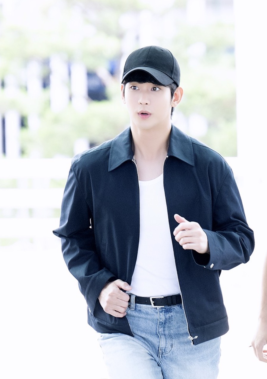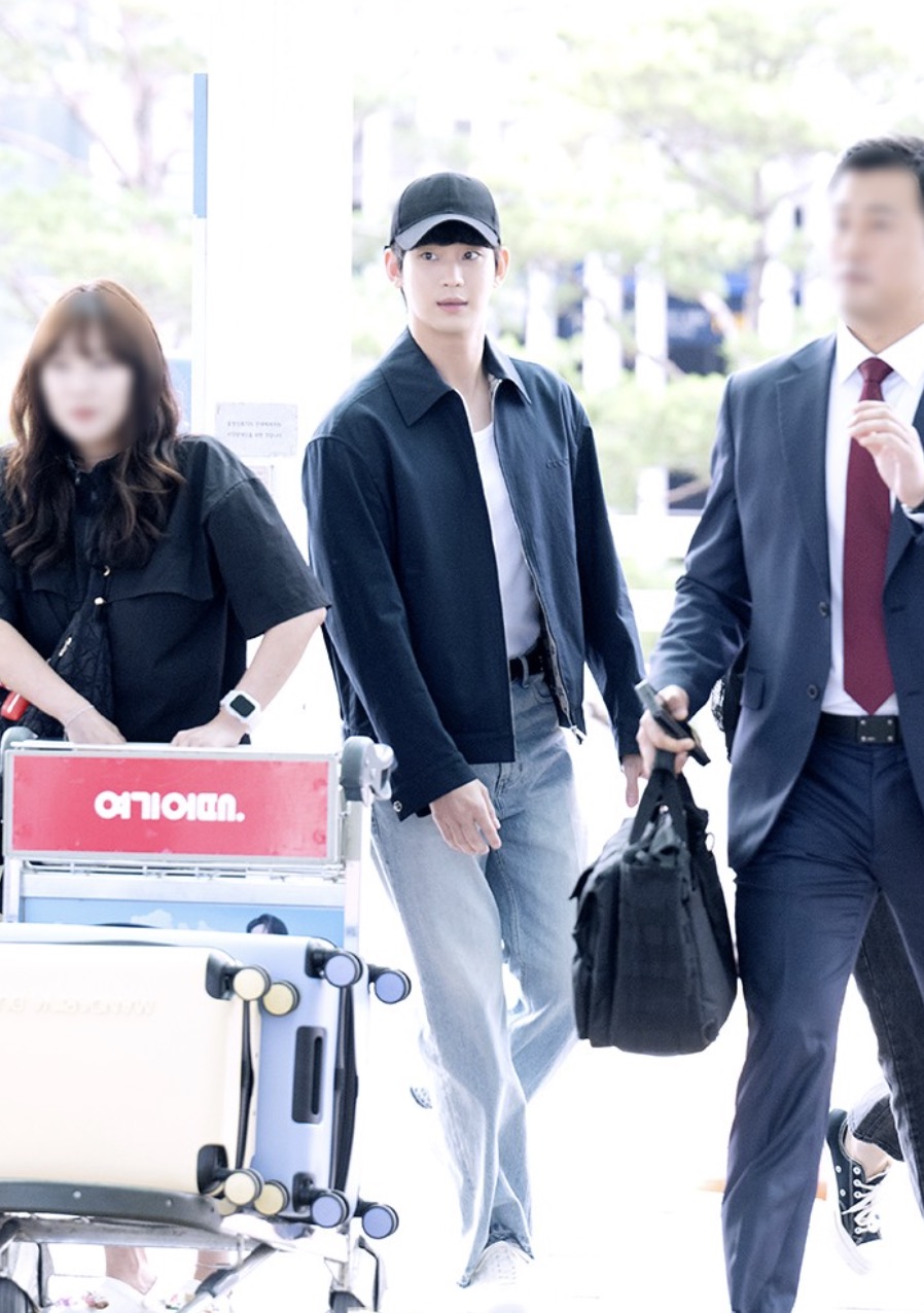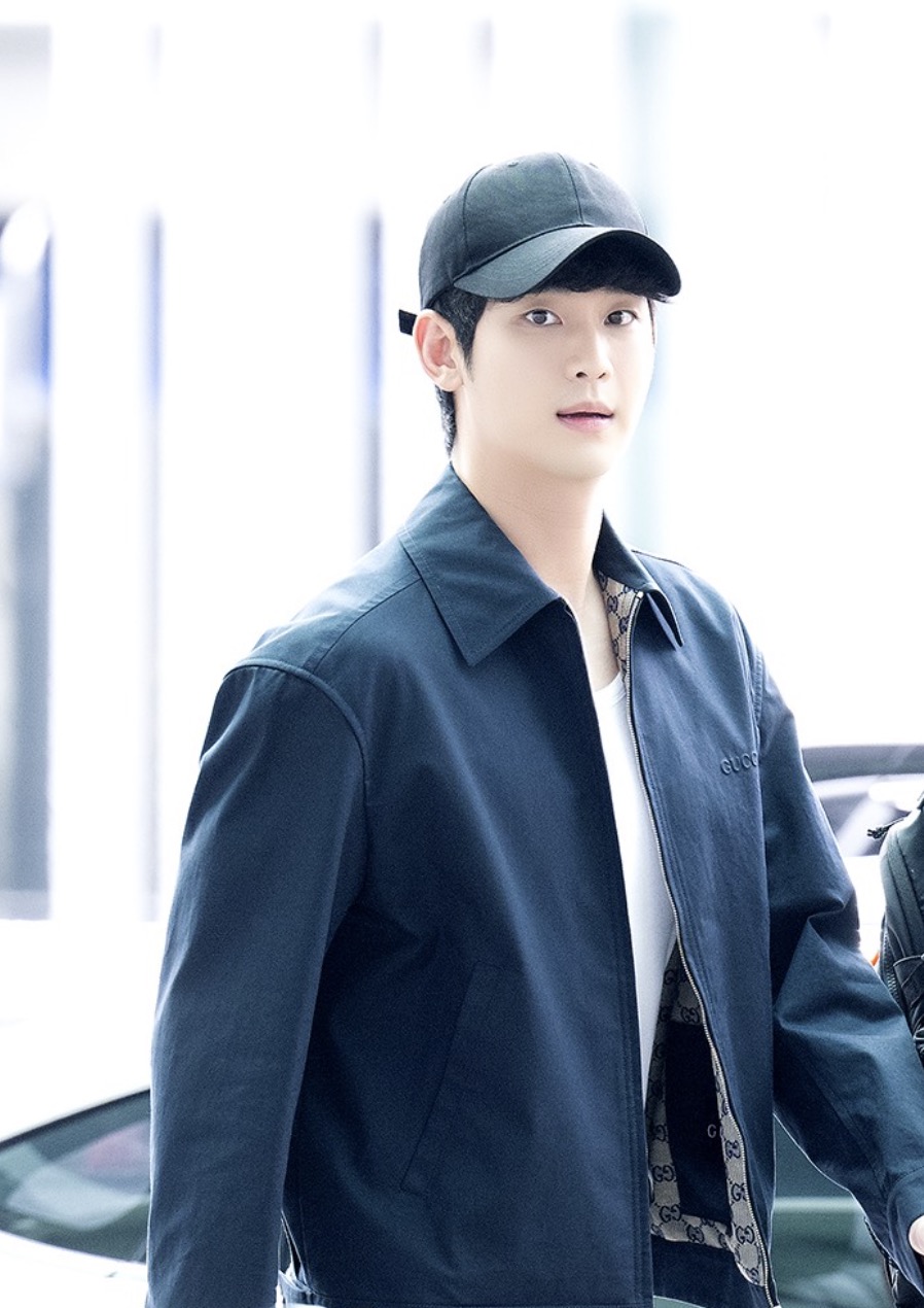 韓國男星金秀賢以一身輕鬆時尚的GUCCI裝扮現身機場 準備於今日(7/5)下午抵台準備粉絲見面會