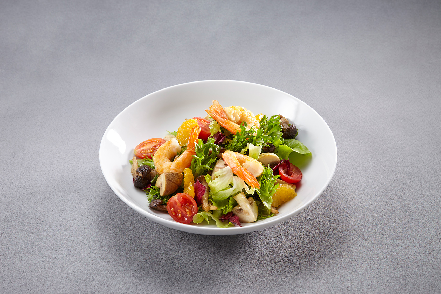 鮮蝦野菇溫沙拉,搭配來自義大利的巴薩米可醋,濃稠的質地和深邃的色澤,讓新鮮的沙拉食材,口味更加層次分明,酸甜交織,風味厚實飽滿。