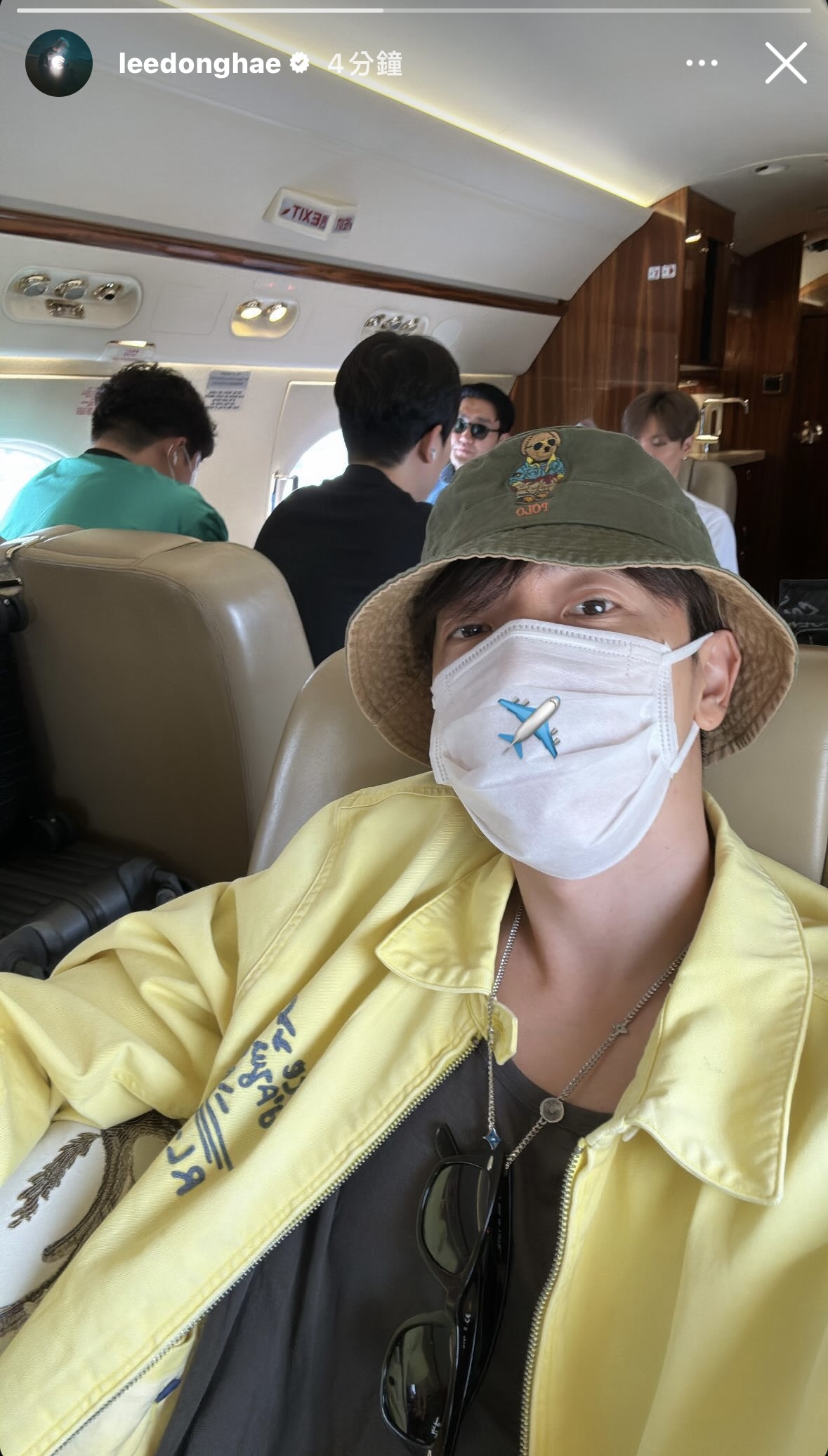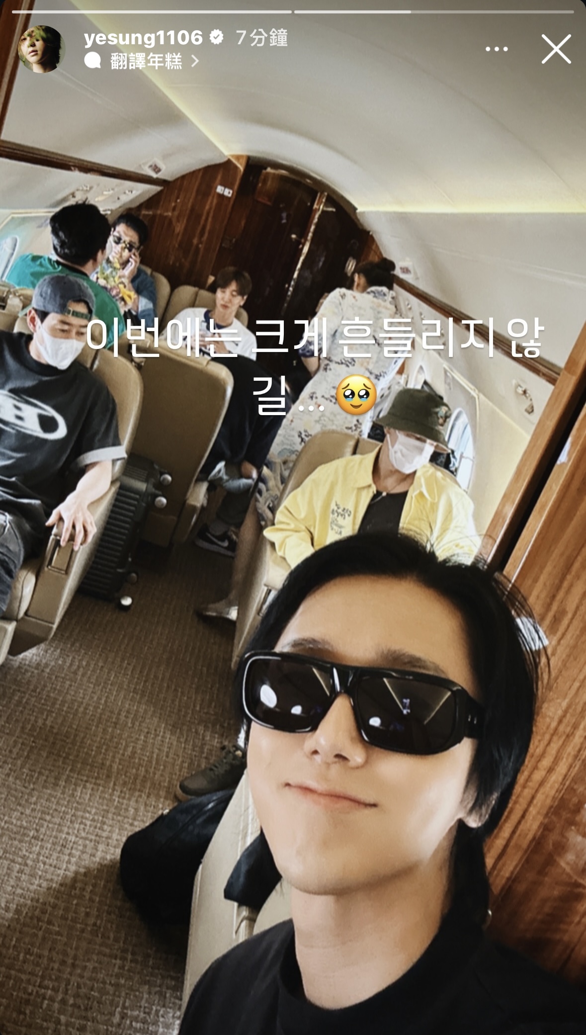 成員厲旭一早率先在IG限時動態透露包機的消息,隨後又接連PO出多張飛機上的照片,成員們甚至站在飛機前大合照,興奮模樣彷彿學生校外教學,而東海跟藝聲也接連發出照片,其中藝聲仍非常擔心氣候狀況緊張表示:「希望不要太晃。」引人注意的是,其中一張照片可見始源戴著墨鏡一臉嚴肅講電話,宛如霸道總裁上身,讓粉絲們紛紛開玩笑說:「該不會這台飛機是始源的吧!」