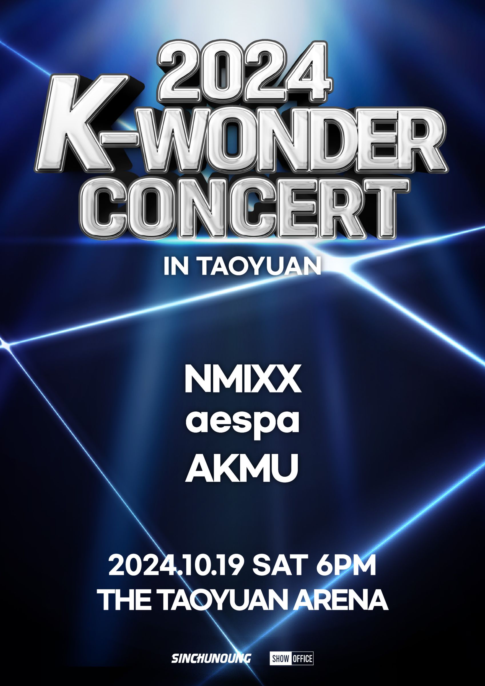 韓流最強三巨頭攜手強勢演出,集合AKMU(樂童音樂家)、aespa與NMIXX,訂於10月19日(六)晚間18:00,於桃園市立綜合體育館(桃園巨蛋)所舉辦的「2024 K-WONDER CONCERT IN TAOYUAN」演唱會,三組巨星不約而同發出邀請,希望所有粉絲都能來現場齊聚,一起放下緊繃的情緒,開心的邊聽、邊唱同歡!更多活動詳情,請上SHOW OFFICE ENTERTAINMENT.CO.LTD官方粉絲團或官方IG查詢。