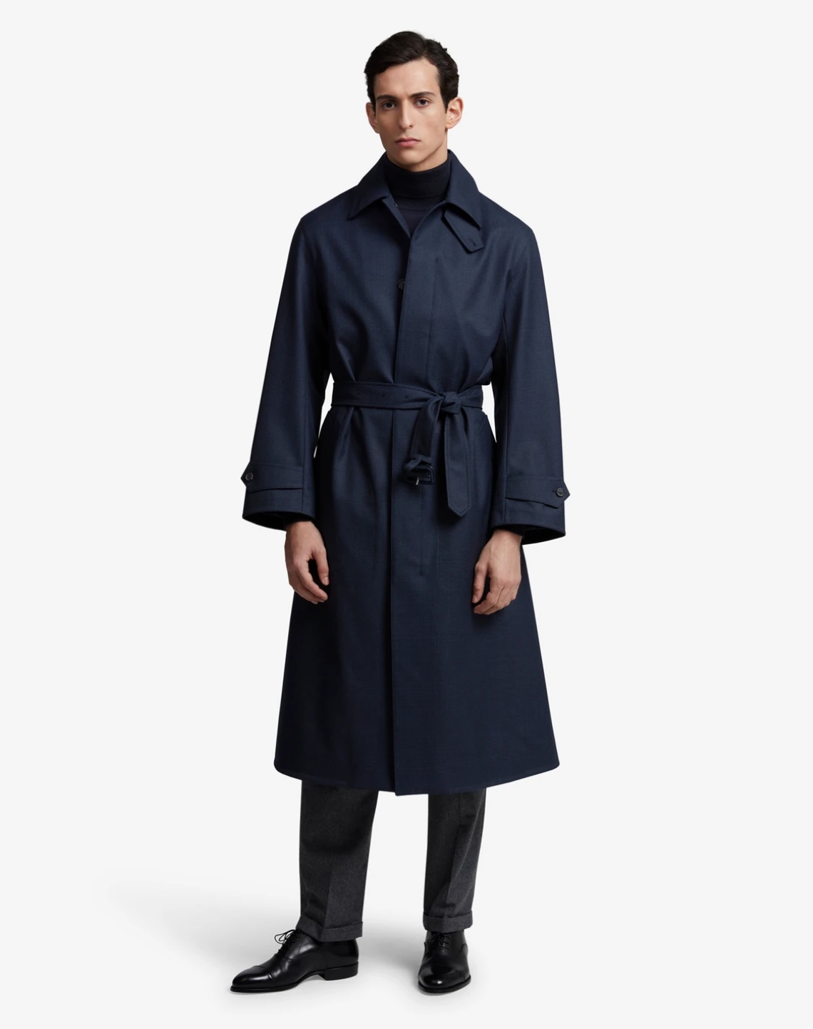 標誌性Car Coat在這季也獲得全新詮釋。一款選用棉質與真絲混紡面料,巧妙融合精湛的絎縫工藝,為這件經典外套注入現代氣息。另一款則採用100%純羊毛製作,以中長版型剪裁,不僅確保卓越的保暖效果,還呈現輕盈優雅的質感。其陽剛的格紋圖案更為整體增添一抹英式優雅氛圍。這兩種設計都為穿著者帶來既舒適又時尚的穿搭體驗。