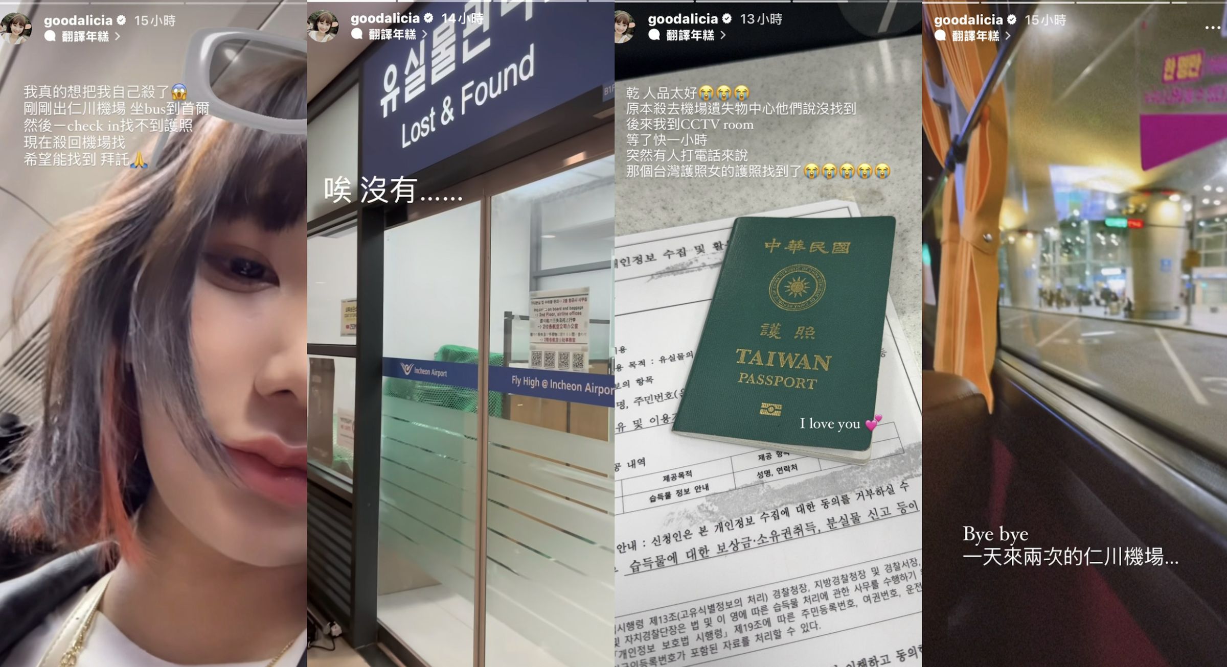 別無他法的愛莉莎莎,只能前往CCTV監控室,等待將近一個小時,就在她焦慮之際,工作人員突然接到電話:「那個台灣女生的護照找到了!」突如其來的好消息讓她又驚又喜,一連在IG寫下5個落淚大哭表情符號。