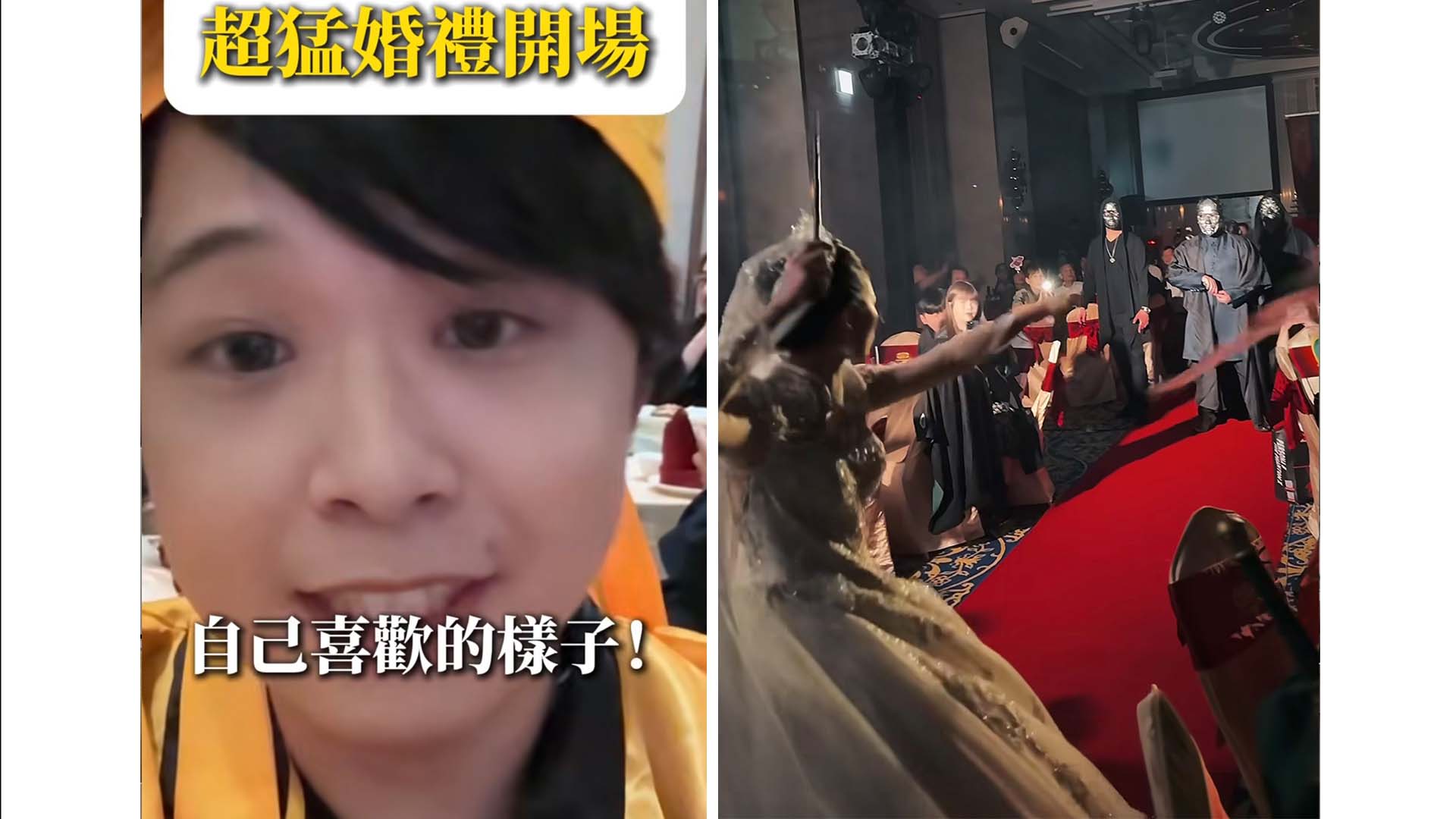 除此之外,原是浪漫的新娘進場下秒就變成緊張刺激的巫師鬥法。新娘還丟出捧花,抽出魔杖一起擊退食死人。最後達爾邀請賓客舉起手上的魔杖或是「桌上的一根筷子」指向投影幕上的黑魔標記並喊出「疾疾護法現身」配合現場燈光和效果,讓在坐賓客看得是目不轉睛。新人精心設計的主題,不只充滿歡笑也留下美好回憶。有趣的畫面上傳也讓網友看了直呼「這世界終於瘋成我想要的樣子」「新娘東西一拋,整個氣勢都上來了」更有網友敲碗許願「我婚禮要辦成皇上登基」引起熱議