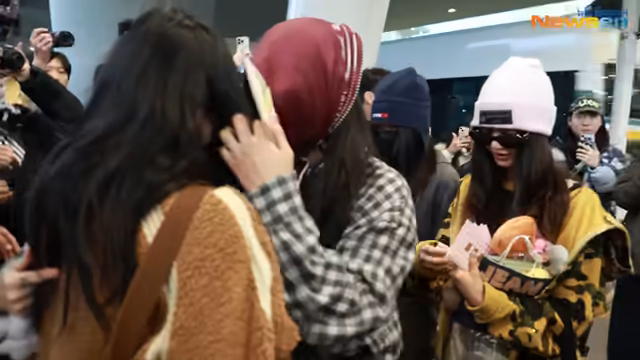 南韓人氣女團 NewJeans 近日剛參加完於泰國舉辦的 AAA 頒獎典禮,雖深陷合約爭議但對活動卻是盡心盡力的她們,不想 28 日返韓時遇上粉絲衝上來擠,意圖搶拍或遞送禮物,場面一度失控相當混亂。成員Hanni在入境時還面帶微笑親切地向粉絲點頭致意,但隨著人群一擁而上,Hanni表情也逐漸緊張,最終更直接躲進成員Minji的懷中,令現場粉絲心疼不已。