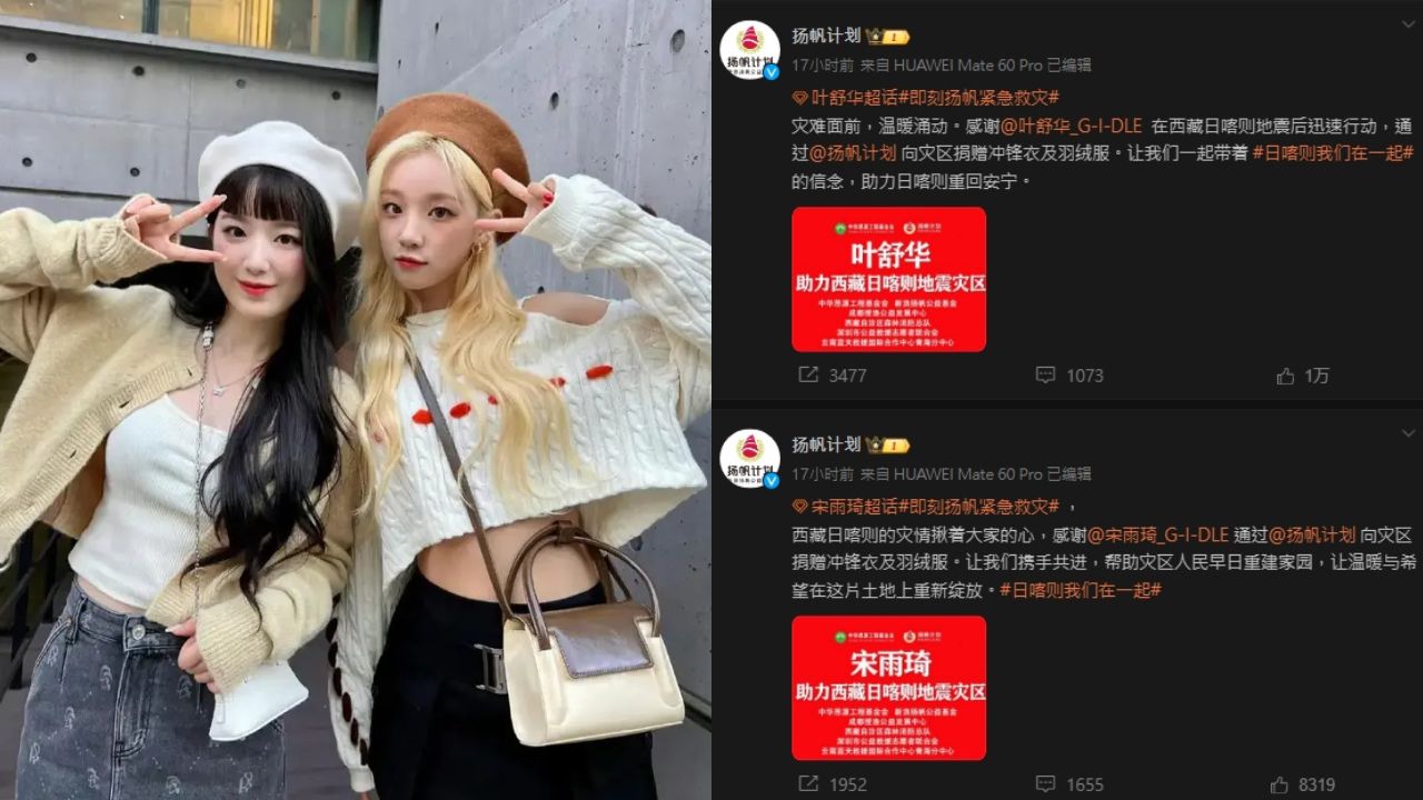 西藏強震見溫暖!(G)I-DLE雨琦、舒華捐贈保暖衣物 趙露思病中仍低調捐物資