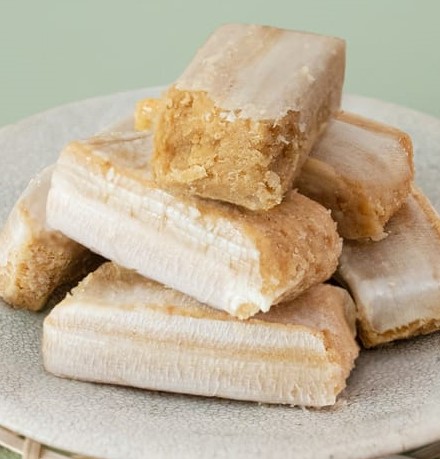 娃娃酥是將砂糖、麥芽糖進行熬煮,加上拌炒過的花生,將其揉捻攪拌混和成內餡,冷卻後在外層裹上糖衣,用模具切割而成。濃厚的花生內餡,搭配酥脆麥芽糖衣深受大家喜愛