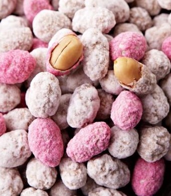 生仁又稱「天公豆、白鴿屎、長壽果」,是先將花生米炒熟後,在外層裹上麥芽糖、糯米粉以及紅白色的糖霜,外觀會呈現凹凸不平的球狀,香甜清脆的口感深受小孩喜愛,剝殼的花生象徵「脫胎換骨」的吉祥寓意,紅白色的造型也很有過年的氛圍感!