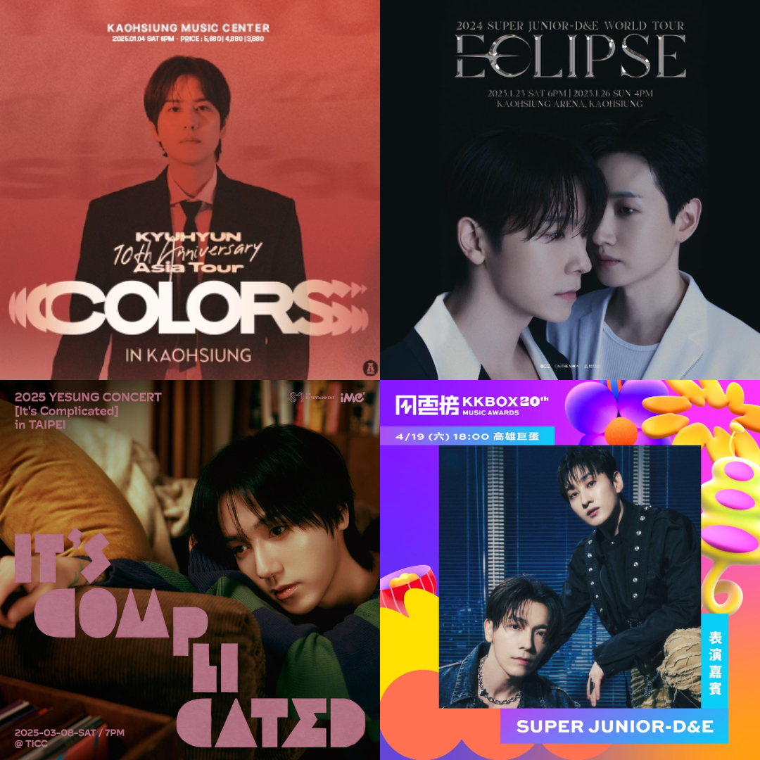 值得一提的是,在「2024灶咖大戰」拿下亞軍的Super Junior,今年更是卯足全力來台,除東海SOLO FANCON,目前已公布活動(包含已舉辦)竟高達7場,包括圭賢個人演唱會台北場及高雄場,藝聲個人演唱會台北場,小分隊D&E演唱會高雄場、簽售會、KKBOX風雲榜。