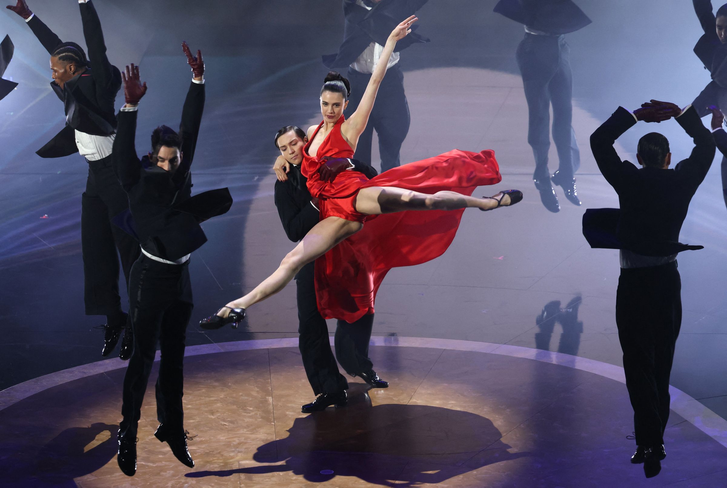 隨後便是眾所期待的 Lisa 緩緩從天而降,只見她身穿黑色蕾絲開岔長裙,並以甜美嗓音獻唱007系列電影的經典曲目《Live & Let Die》,隨後歌曲曲風轉變,變得氣勢磅礡伴 Lisa 也隨之起舞,有如女王般的架式令人驚艷外,同時也大秀出色舞技,魅惑鏡頭的出色演出更是引發熱議,緊接著 Doja Cat 登場演唱《Diamonds are forever》渾厚嗓音,使歌曲更添特色,完美的高音引得台下喝采,隨後 RAYE 登場演唱同樣演唱《007》經典歌曲《Skyfall》,並戴上管絃樂現場演奏,搭配 RAYE 獨有的嗓音為演出劃下完美的結尾,出色的表演片段,也在網上掀起熱議。