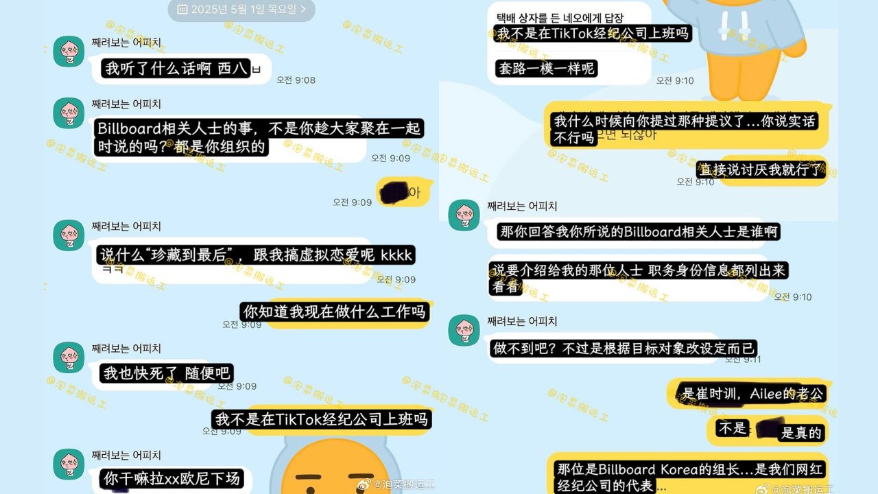 對此,韓媒《OSEN》聯絡了一位熟悉 Ailee 與崔時訓的相關人士,該人士表示:「據我所知,崔時訓確實與Billboard公司有關,從事與網紅相關的業務,也確實擔任某網紅經紀公司的代表。」但對於「是否是Billboard組長」則表示不清楚。