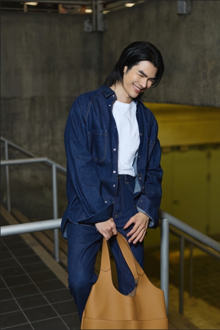 穿搭:駝色 Dior x Lewis Hamilton 膠囊系列上衣(將於 7/3 正式上市)+ 丹寧褲
