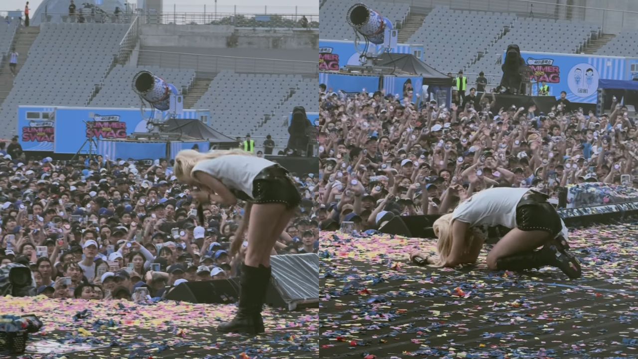 在演唱上 Rosé 發表感言:「自從去年 12 月發行個人專輯以來,今天是第一次在這麼多人面前跟大家打招呼。特別是〈APT.〉這首歌,收到大家很多喜愛,我真的很想好好地說一聲『謝謝』。」接著她以韓國傳統跪拜行大禮的方式向全場觀眾致意,哽咽地說:「我真的很用心地準備了,謝謝你們給我力量……我真的不想哭!」這一幕讓台下粉絲淚腺大崩潰,也在社群上引起熱議:「Rosé真的太暖了」、「她跪下的瞬間我直接破防」。