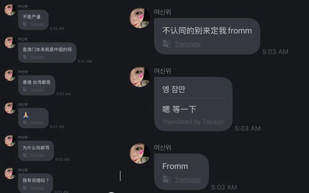 事件發生於 7月12日,周心語在付費粉絲互動平台「fromm」與粉絲聊天時,主動提及:「澳門本來就是中國的啊,香港、台灣都是」,對話內容隨即被截圖轉傳至各大韓網與社群平台,有粉絲當場提醒她「說話要小心」,沒想到她不僅未收回,還強硬回應:「為什麼怕被罵?我有說錯嗎?」甚至進一步表示:「不認同的就別來訂我」,態度強硬,引爆大批南韓網友與國際粉絲不滿。