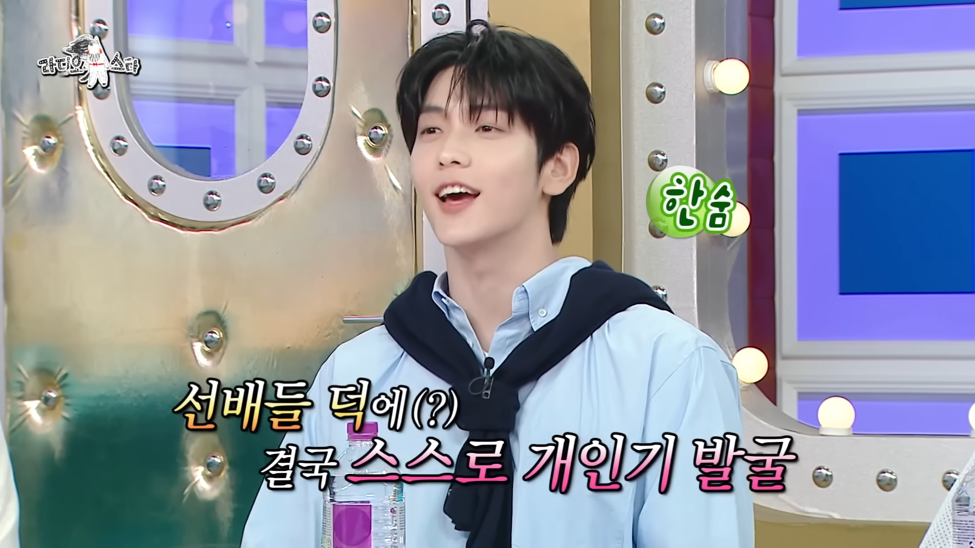 節目中秀彬不只才藝吸睛,更自曝在公司是「有話直說」的風格,被戲稱是「HYBE 的李洪基」這次上節目也被同事們叮囑不要亂講話,不過秀彬卻搞笑表示自己沒有壓力更直白的說:「現在是續約期間,我們才是甲方」,爽快的回答也讓主持群笑成一片。