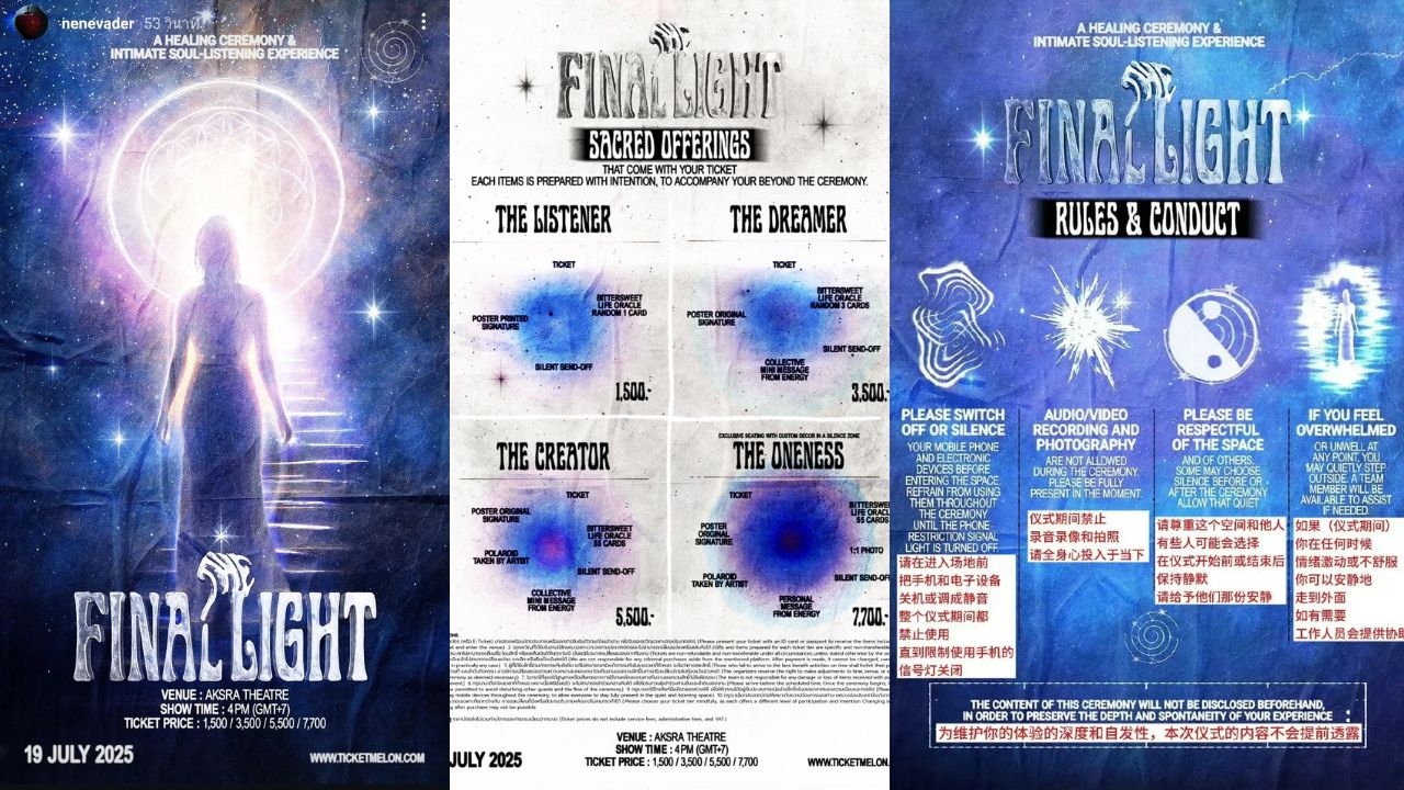 她於7月19、20日在泰國舉行粉絲見面會,主打「治癒儀式」,活動包含能量解讀、通靈、靜默送別與神諭卡贈送,官方文案更寫下「柔和的光線與神聖的聲音引領您回家」、「粉絲福利為神聖的祭品」,現場禁止錄影錄音,需全程靜默。此舉一出便引發爭議,被批過於詭異,宛如宗教儀式,甚至有人直言「割韭菜邪教行銷」。