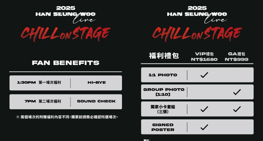 韓勝宇將透過這次《CHILL ON STAGE》演唱會,與長久等待他的粉絲們一同完成一場獨一無二的療癒舞台。本次活動也特別準備了包含1:1合照、親筆簽名海報、獨家小卡等豐富的福利禮包。邀請台灣的HAN_A們,9月27日,一起走進韓勝宇的音樂宇宙,感受他想親自傳遞的每一分真摯與感動。演唱會門票將於8月10日下午1點起,透過遠大售票系統全面開賣。更多活動詳情請關注主辦單位官方社群。
